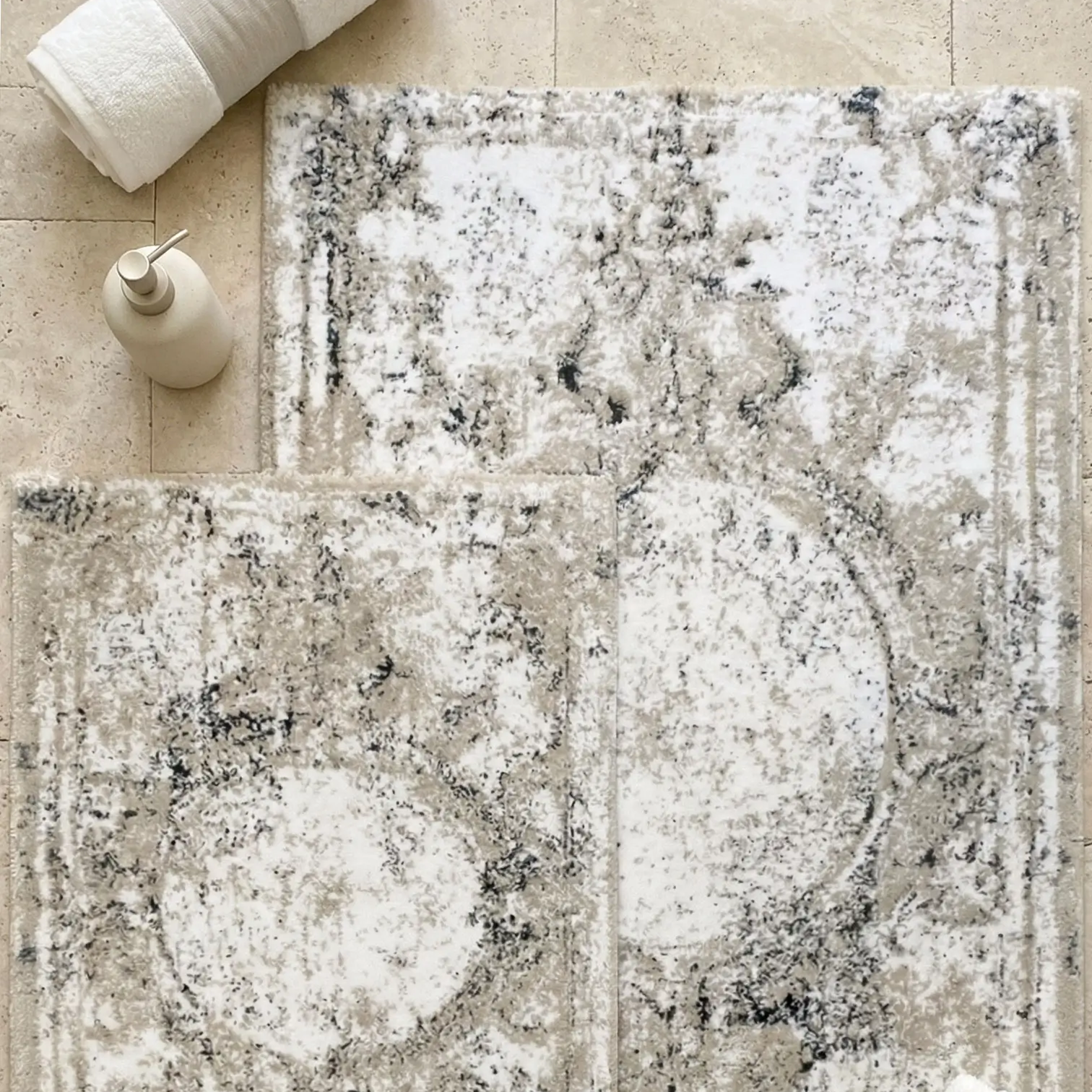 ANNA 2'Lİ PASPAS TAKIMI, bu zarif paspas seti, Pamuk - viskon ipliğinden üretilmiş olup, yumuşak dokusu sayesinde konforlu bir kullanım sunar. Alt kısmı halı tabanlıdır, bu sayede kaymaz özelliğe sahiptir ve güvenli bir kullanım sağlar.