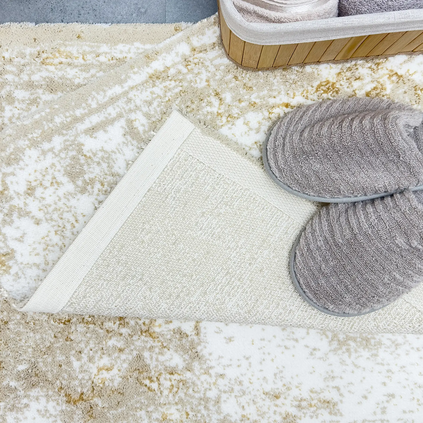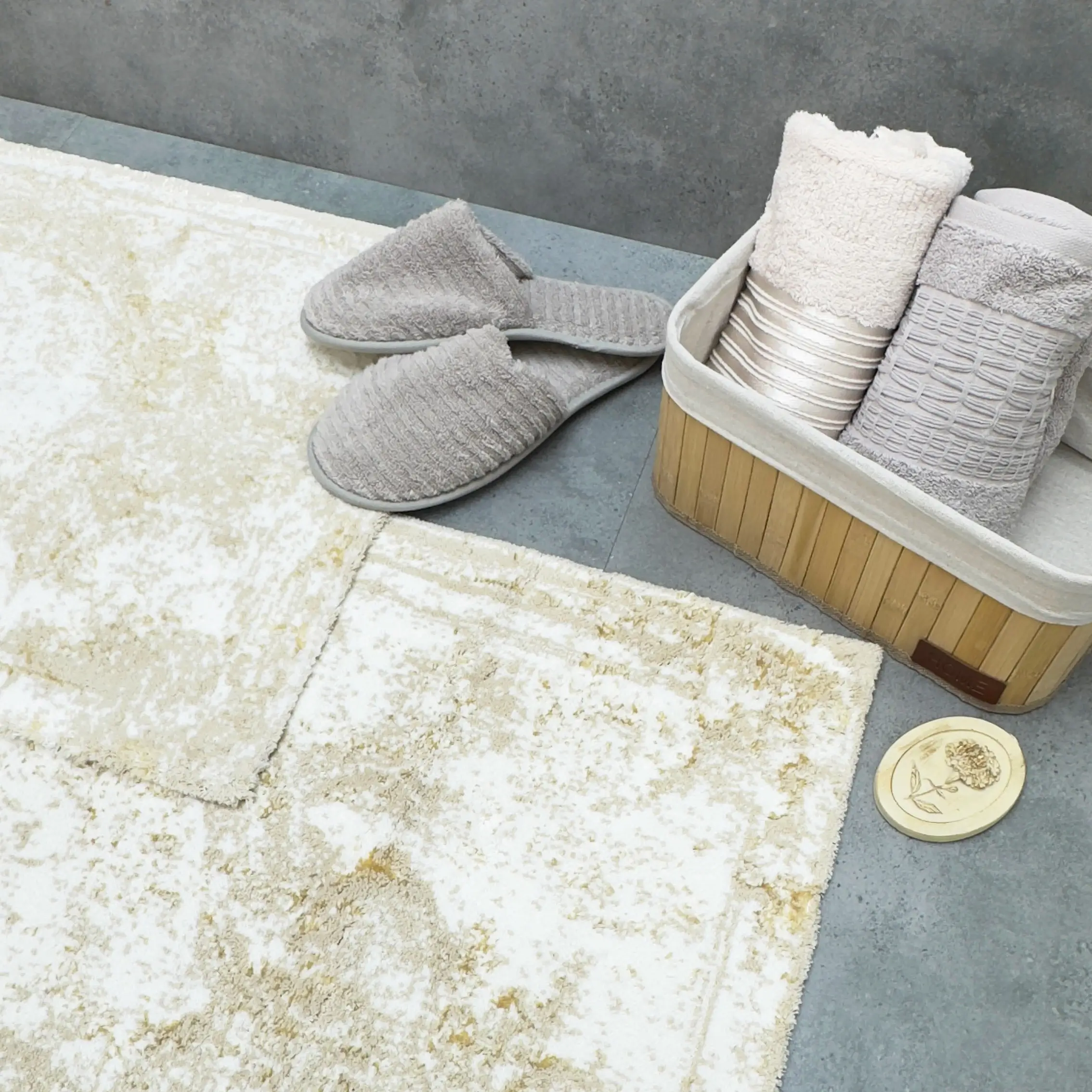 ANNA 2'Lİ PASPAS TAKIMI, bu zarif paspas seti, Pamuk - viskon ipliğinden üretilmiş olup, yumuşak dokusu sayesinde konforlu bir kullanım sunar. Alt kısmı halı tabanlıdır, bu sayede kaymaz özelliğe sahiptir ve güvenli bir kullanım sağlar.