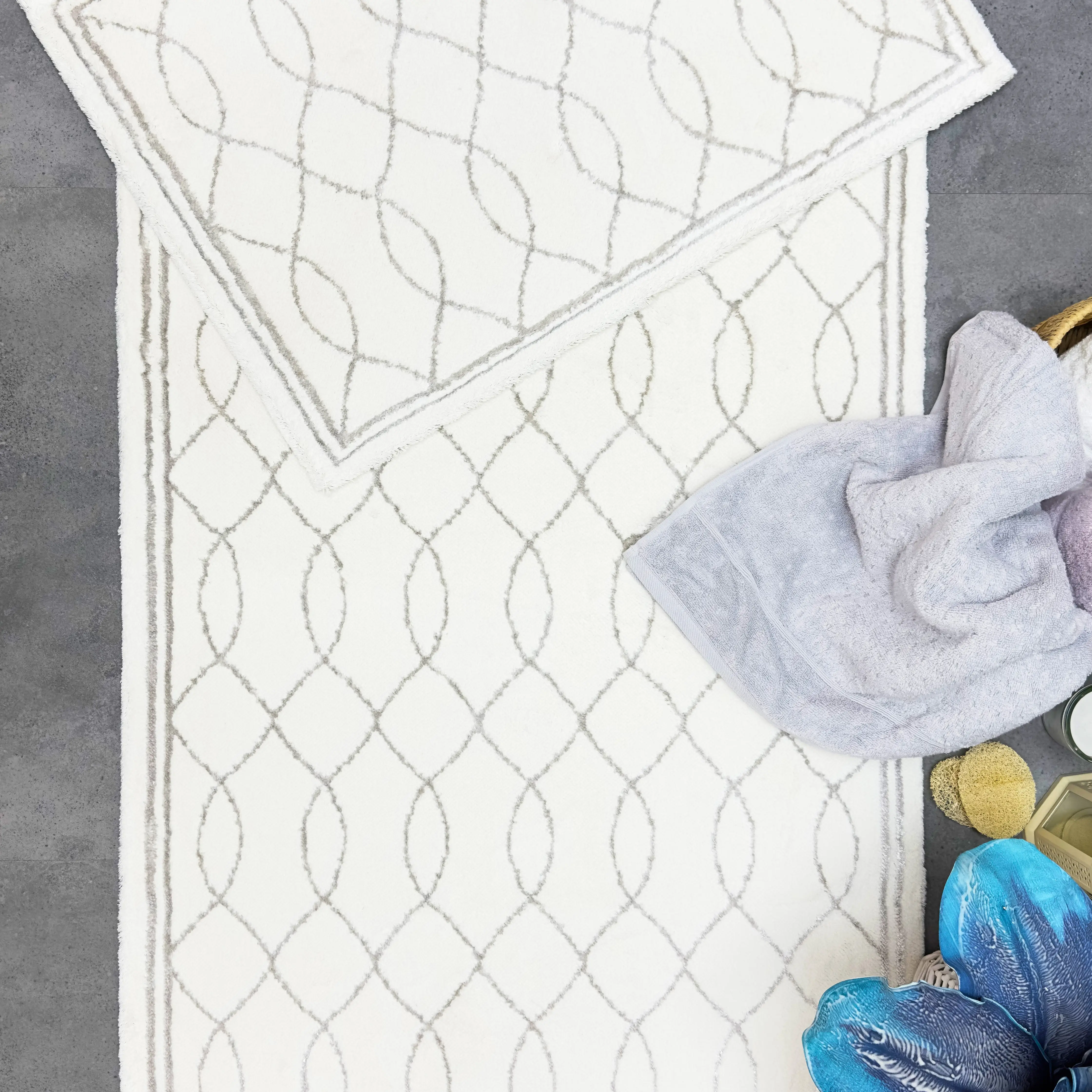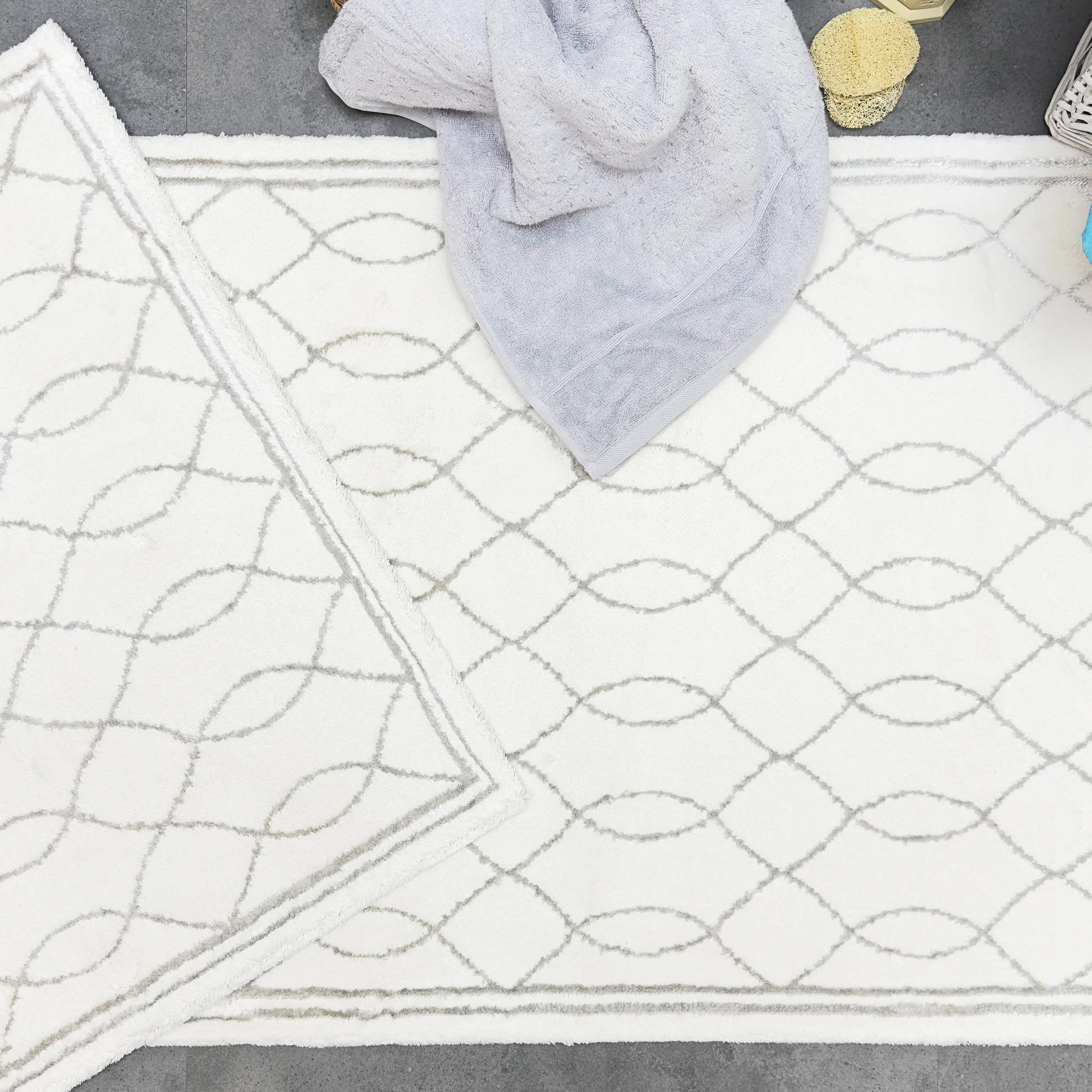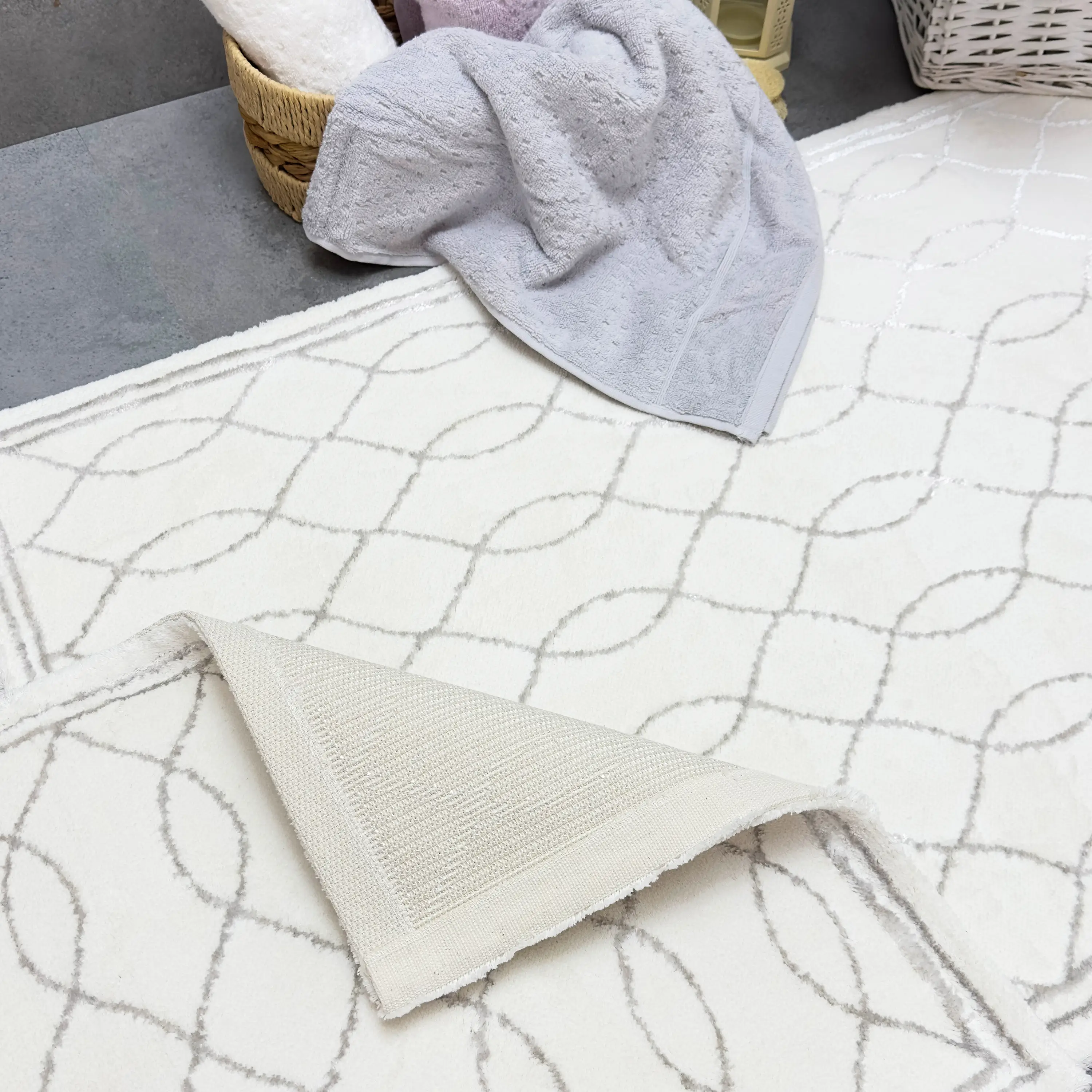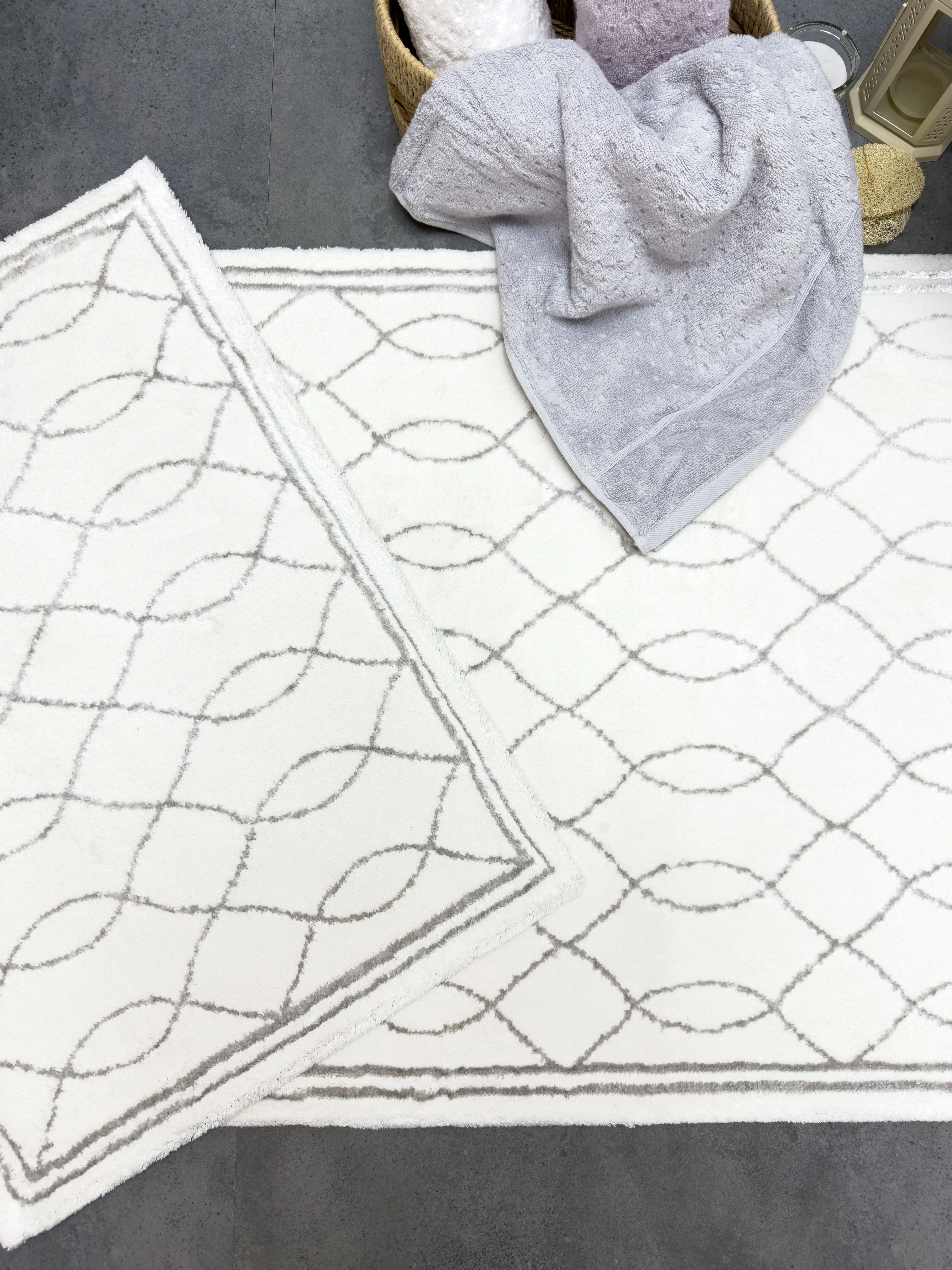ARNERA 2'Lİ PASPAS TAKIMI, bu zarif paspas seti, Pamuk - viskon ipliğinden üretilmiş olup, yumuşak dokusu sayesinde konforlu bir kullanım sunar. Alt kısmı halı tabanlıdır, bu sayede kaymaz özelliğe sahiptir ve güvenli bir kullanım sağlar.