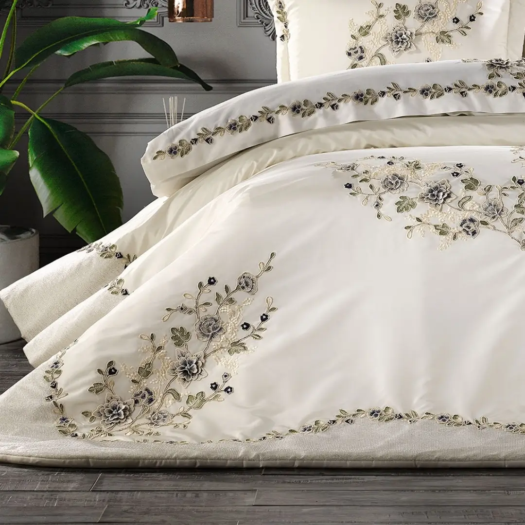 Caroline 4 Parça Yatak Örtüsü / Bej
