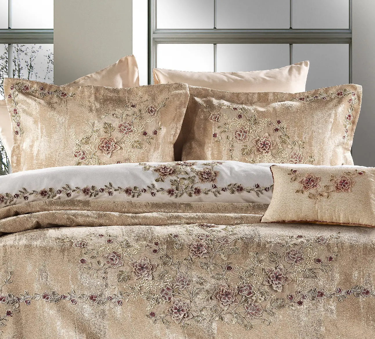 - Pike etek uçlarında ve yastık kenarlarında modelin çiçek ve yaprak işlemelerinden şerit geçilmiştir.
