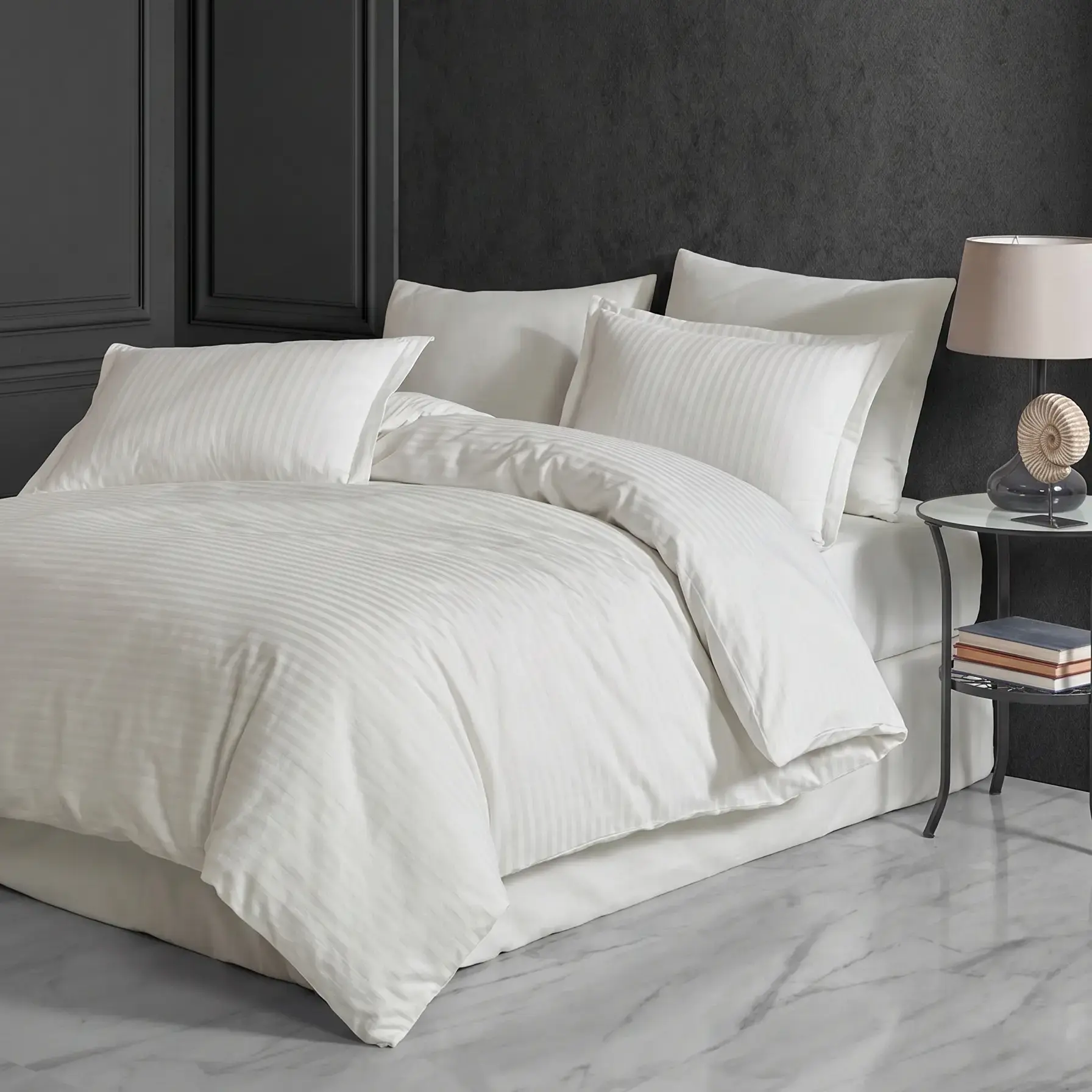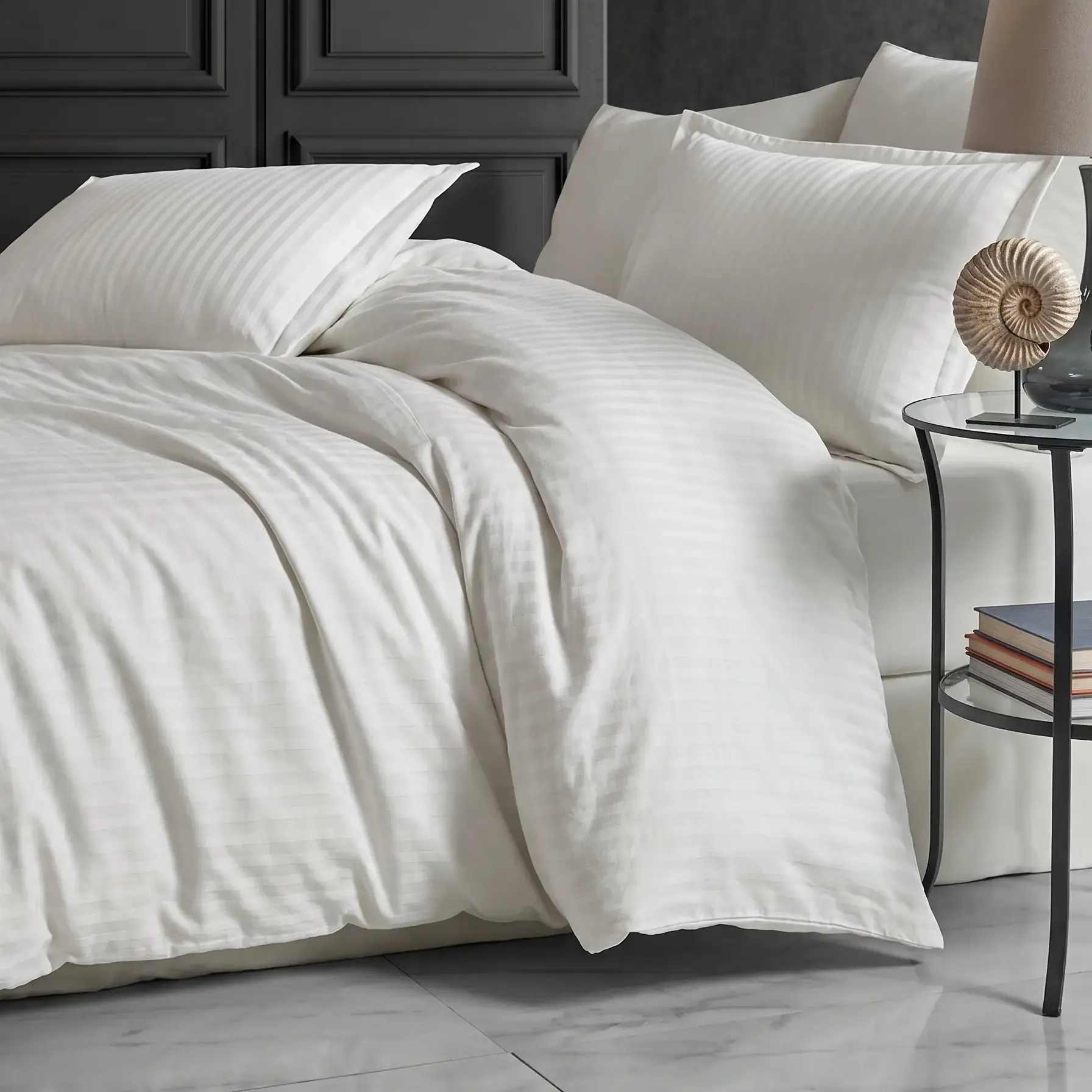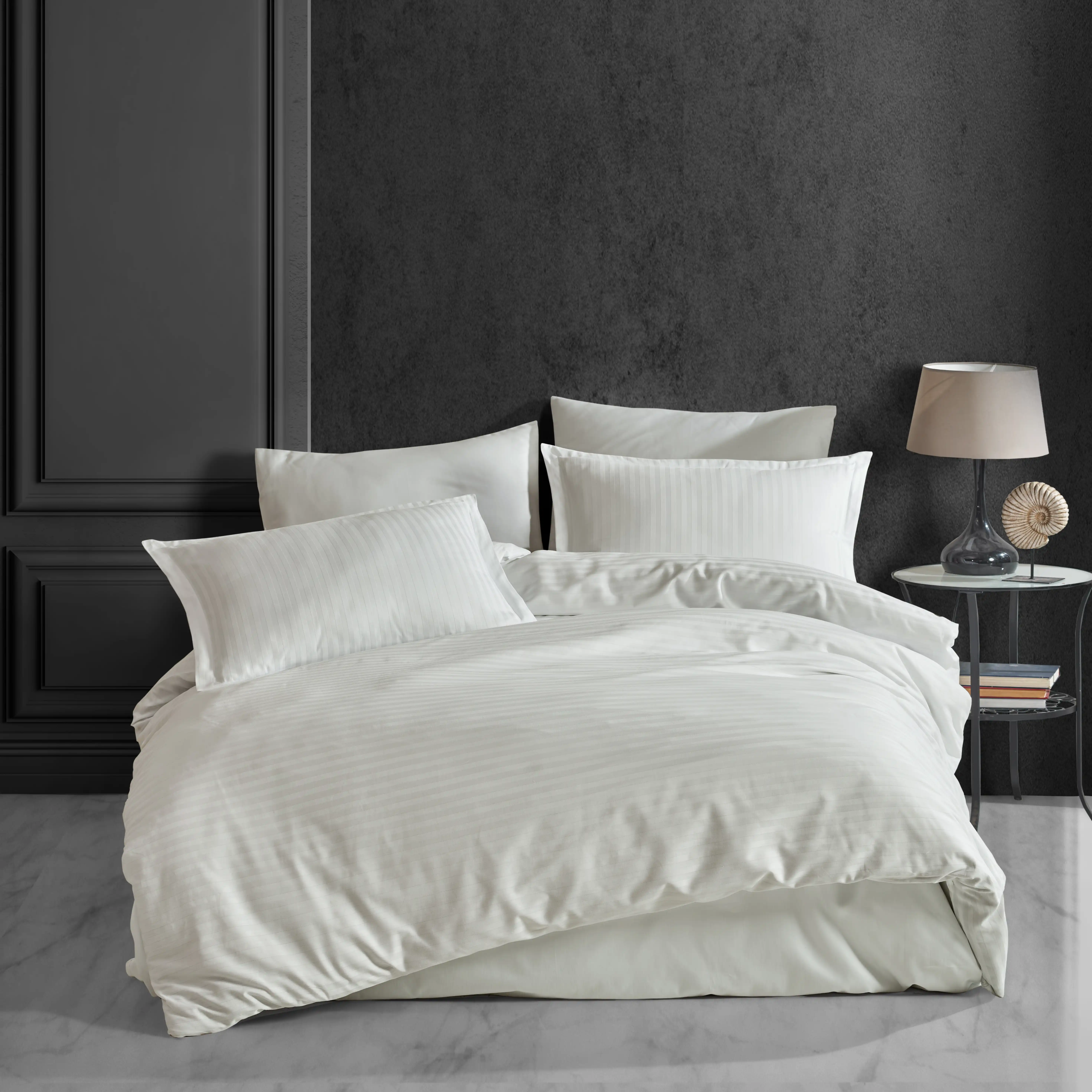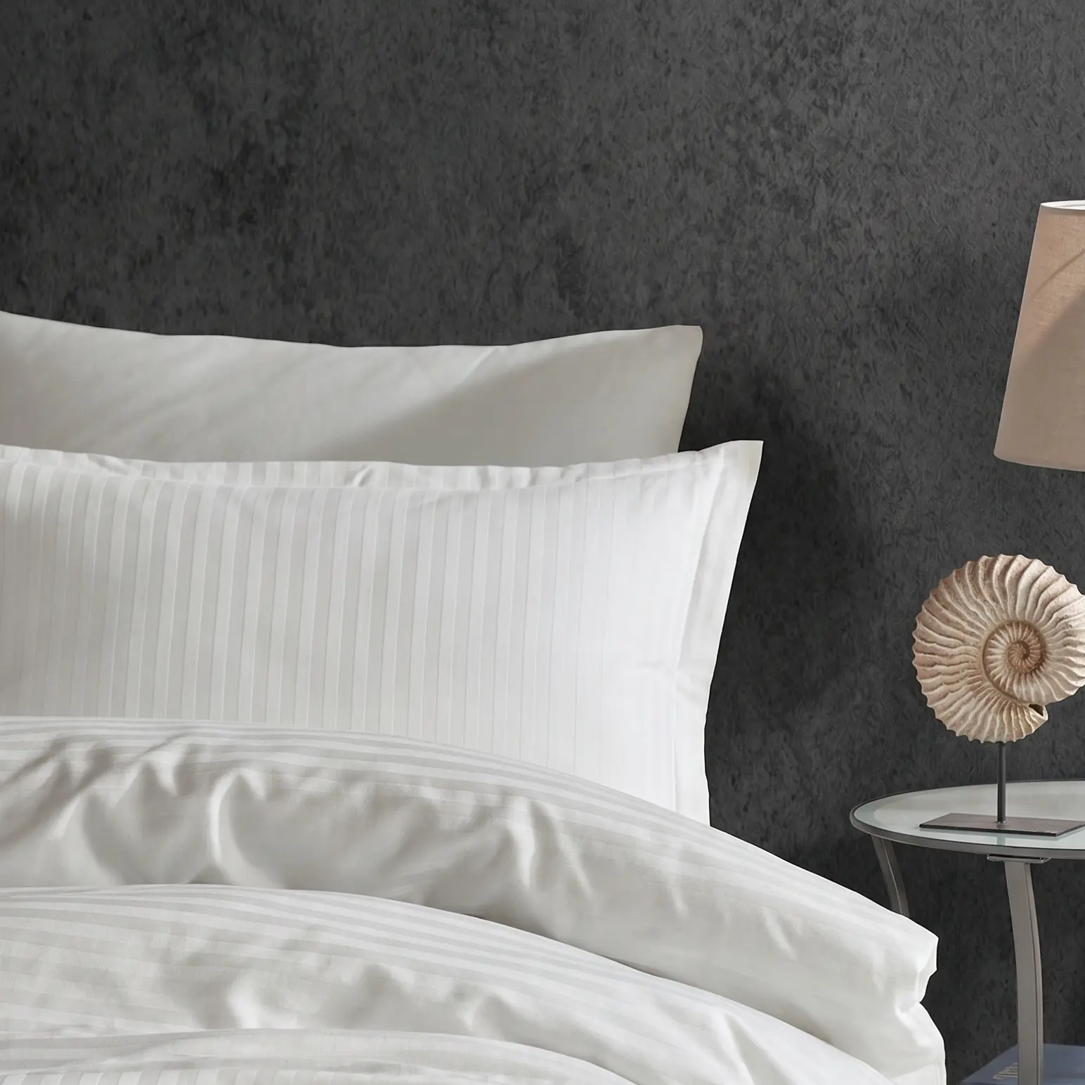 Modern çizgili saten dokusuyla sade ve şık bir görünüm sunan Bonny nevresim takımı; Ekru, Açık Bej, Gri, Mürdüm, Somon ve Siyah renk seçenekleri ile her yatak odası dekorasyonuna uyum sağlar.