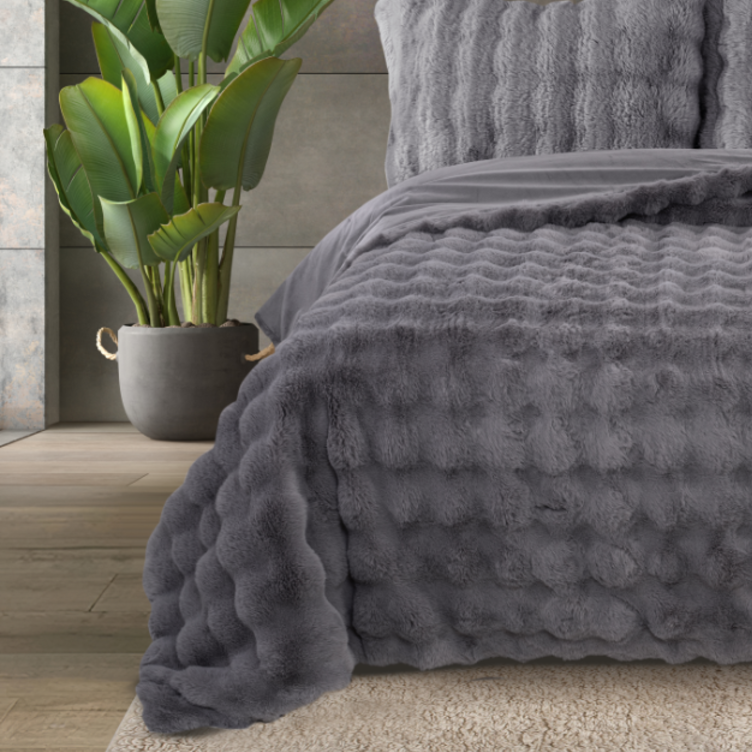 Bonny Kürk Yatak Örtüsü, kürk dokusu, hem görsel olarak sıcak bir atmosfer yaratır hem de yumuşaklığıyla kullanıcısına benzersiz bir rahatlık sunar.