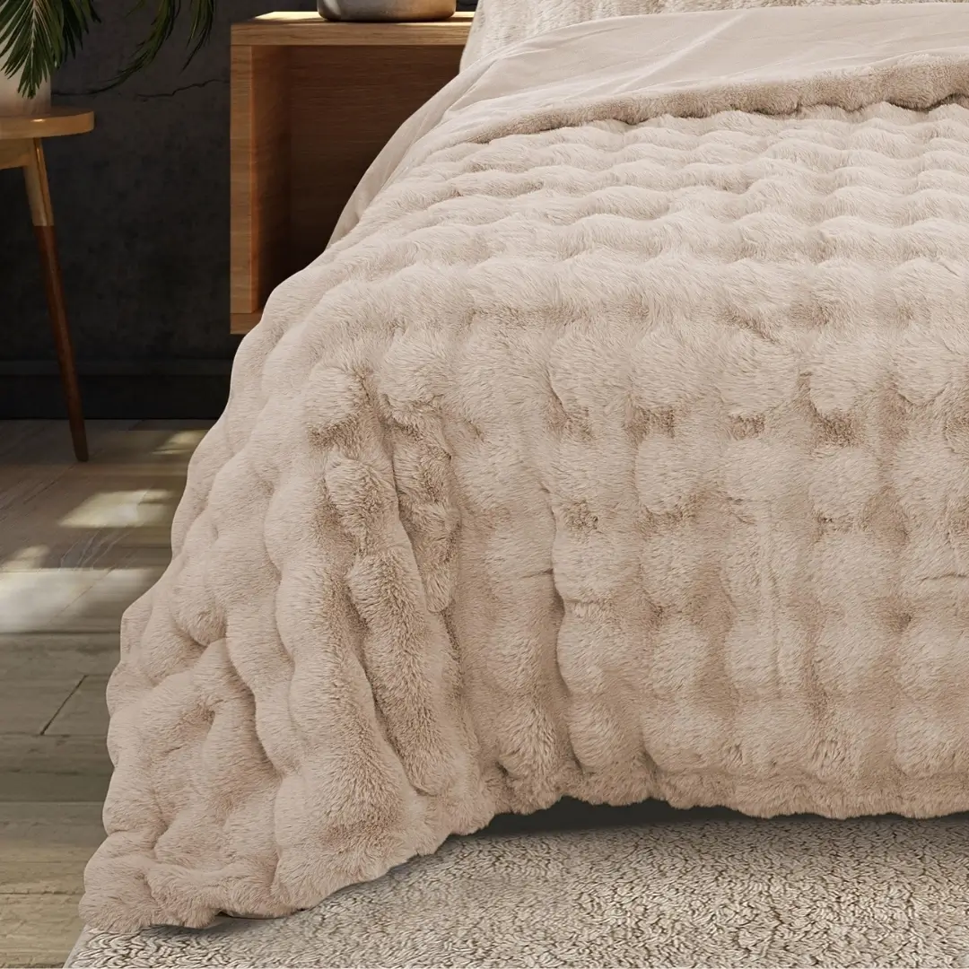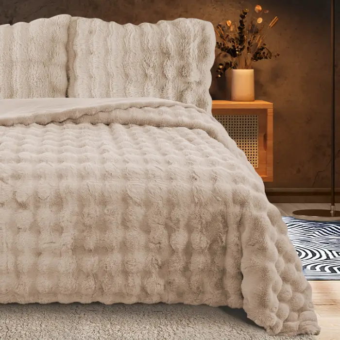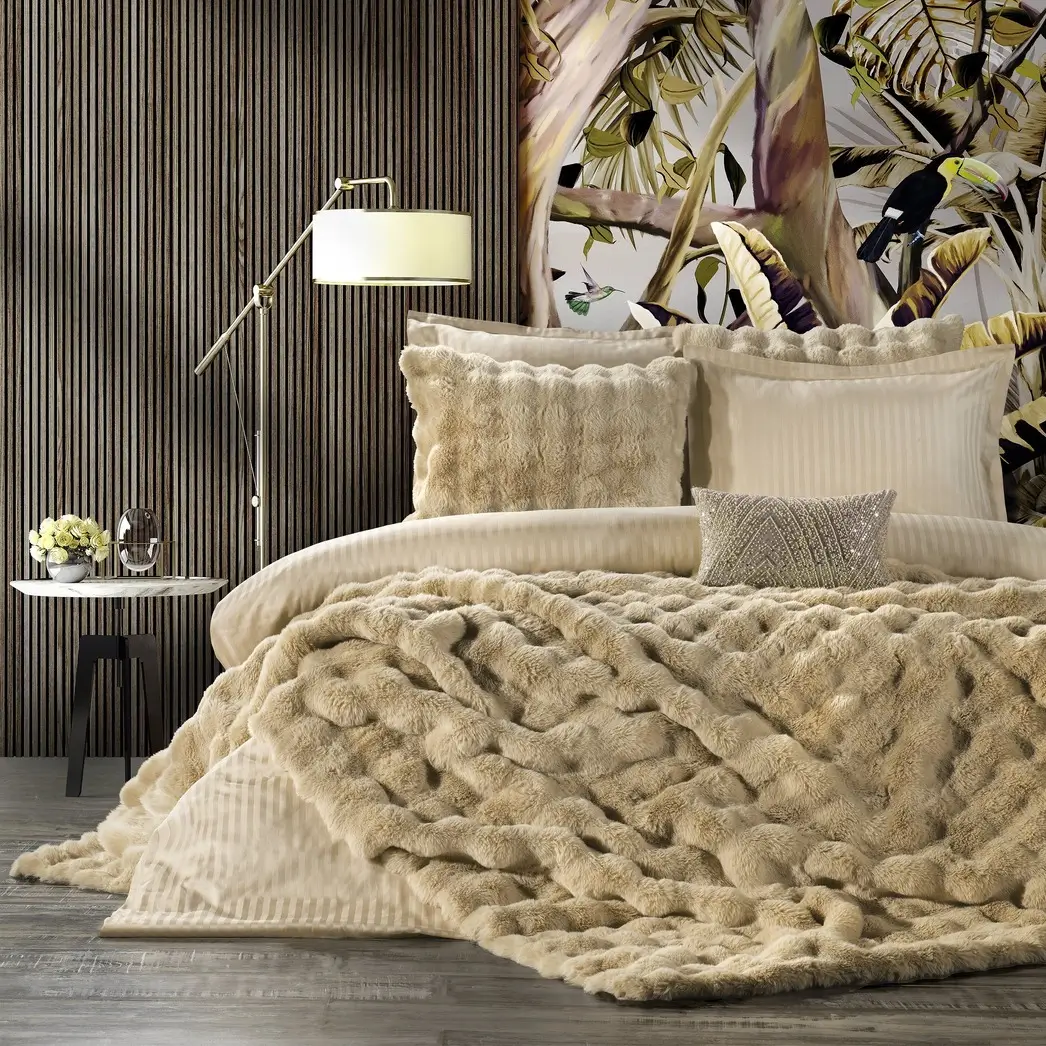 Bonny Kürk Yatak Örtüsü, kürk dokusu, hem görsel olarak sıcak bir atmosfer yaratır hem de yumuşaklığıyla kullanıcısına benzersiz bir rahatlık sunar.