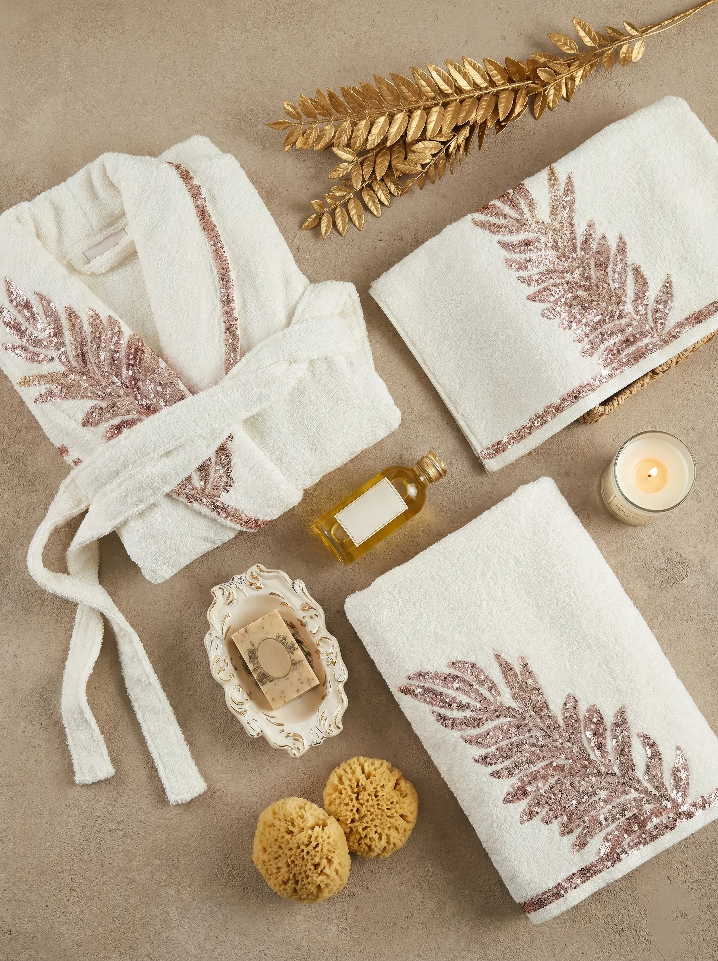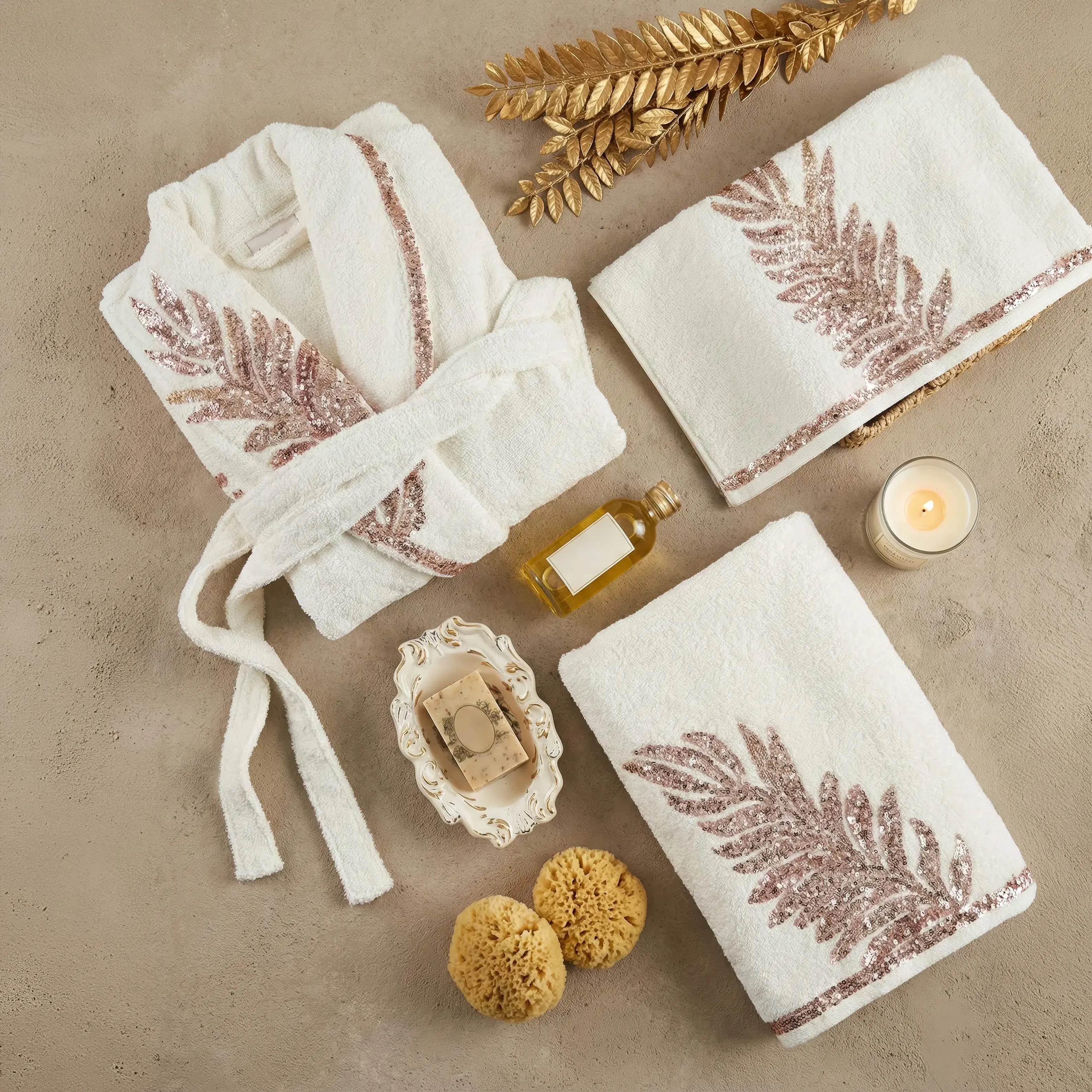 Gelince Haber VerCAROLINE BAMBU AİLE BORNOZ SETİ, yüksek kalitede bambu içeriği ve taşlı işlemeleriyle özel hissettirir!