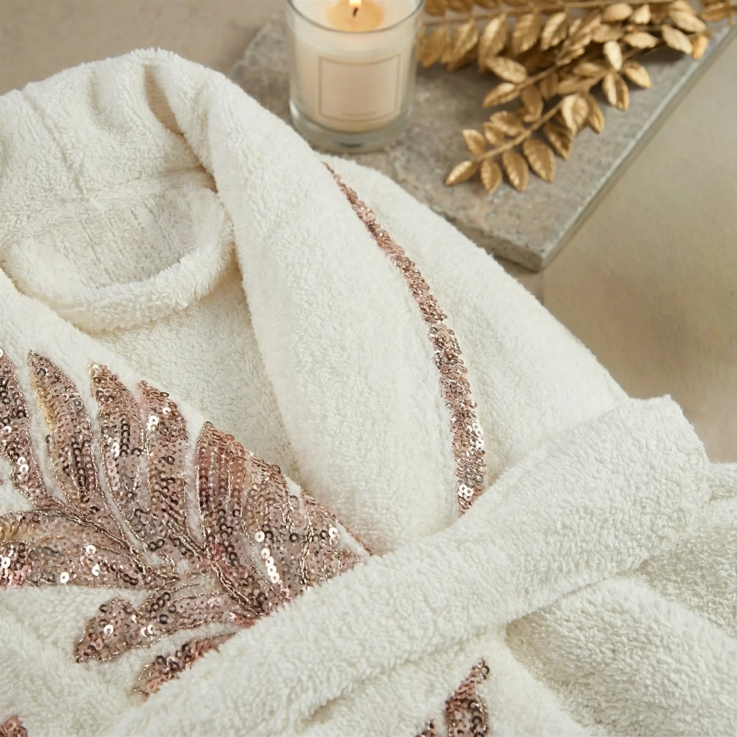 Doku: Yumuşak dokulu kumaşı, zarif işlemeleri ve krem tonlarının huzur veren etkisiyle hem günlük kullanım hem de özel anlar için ideal bir tercihtir.
