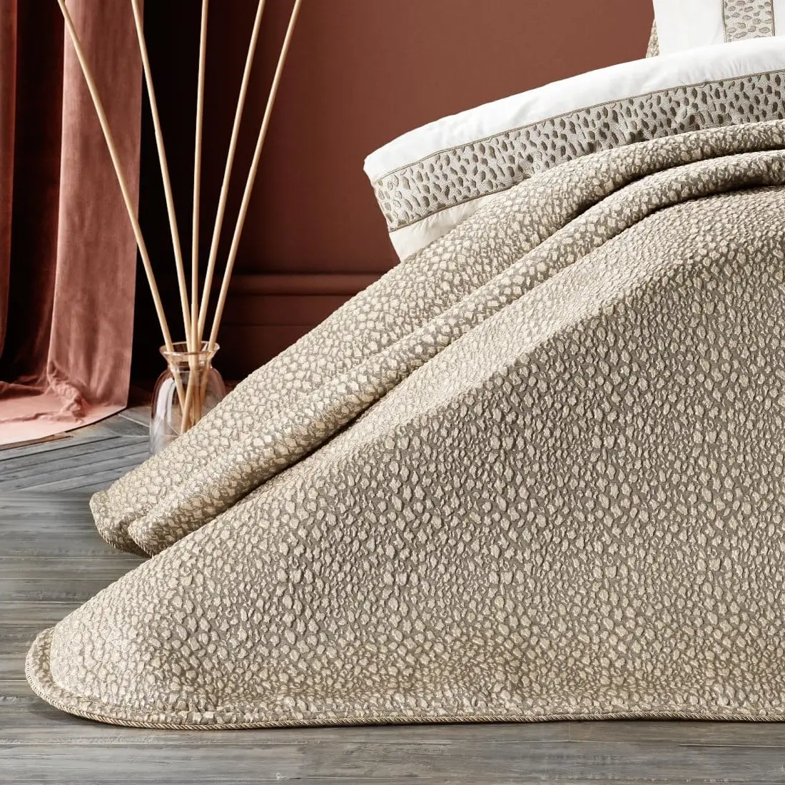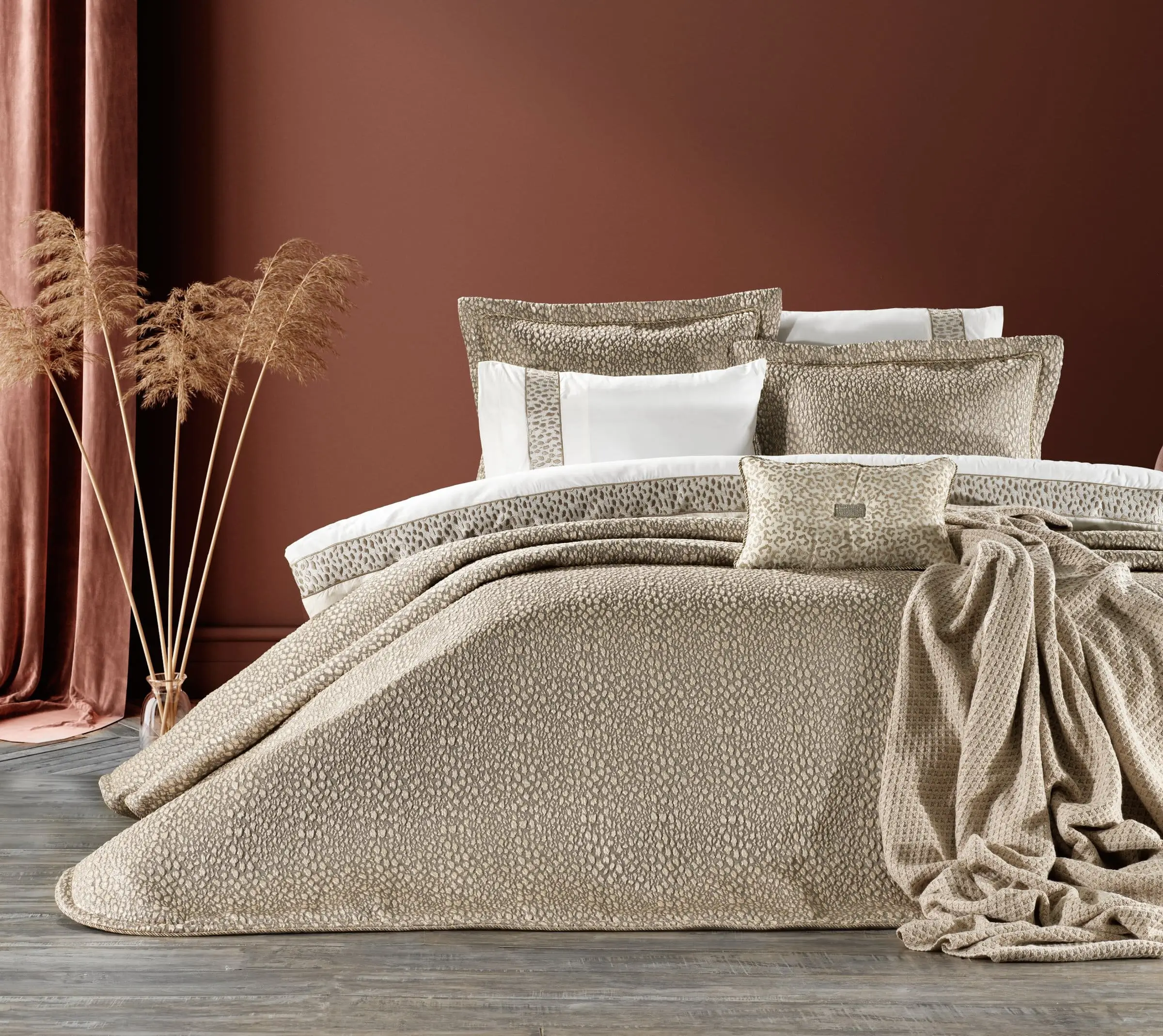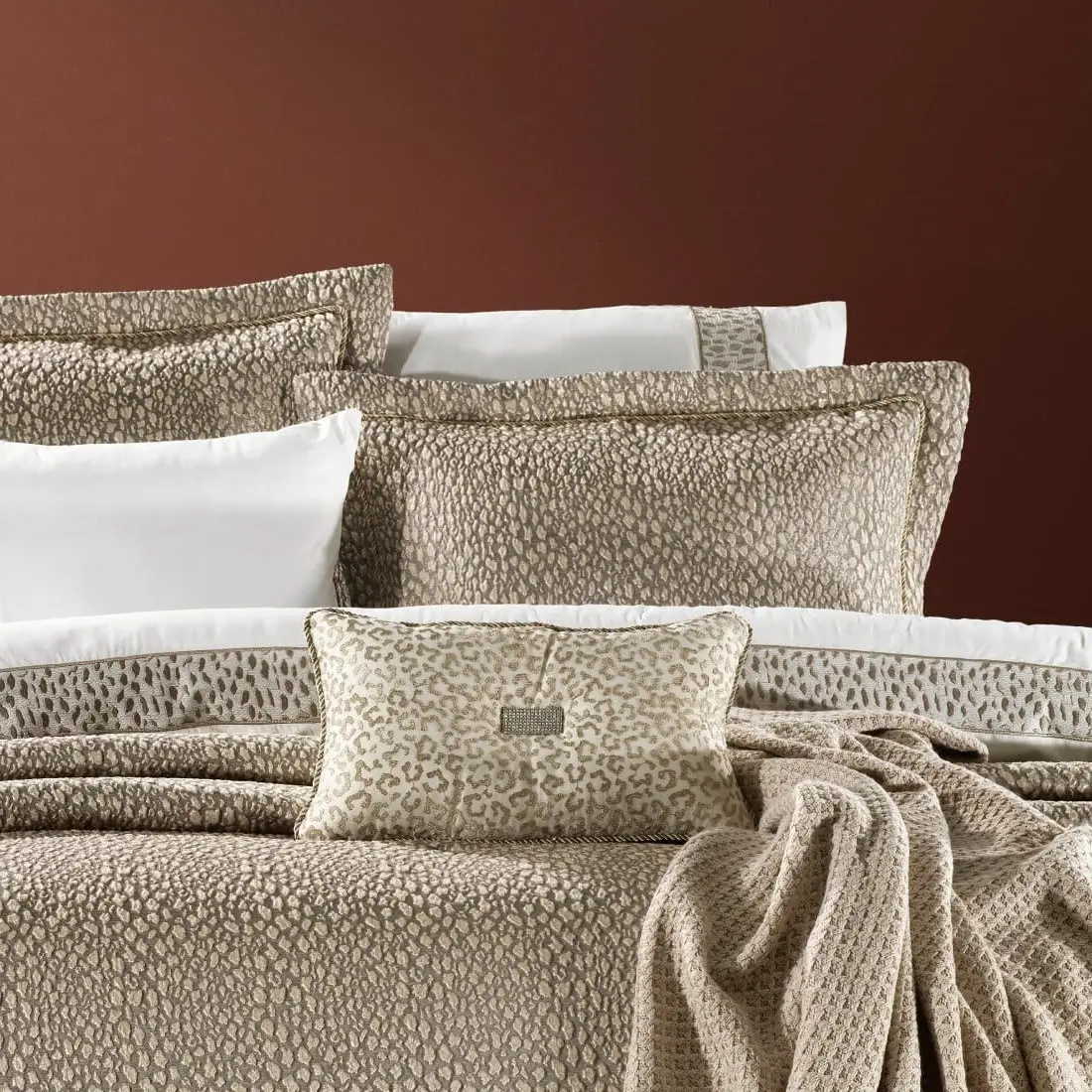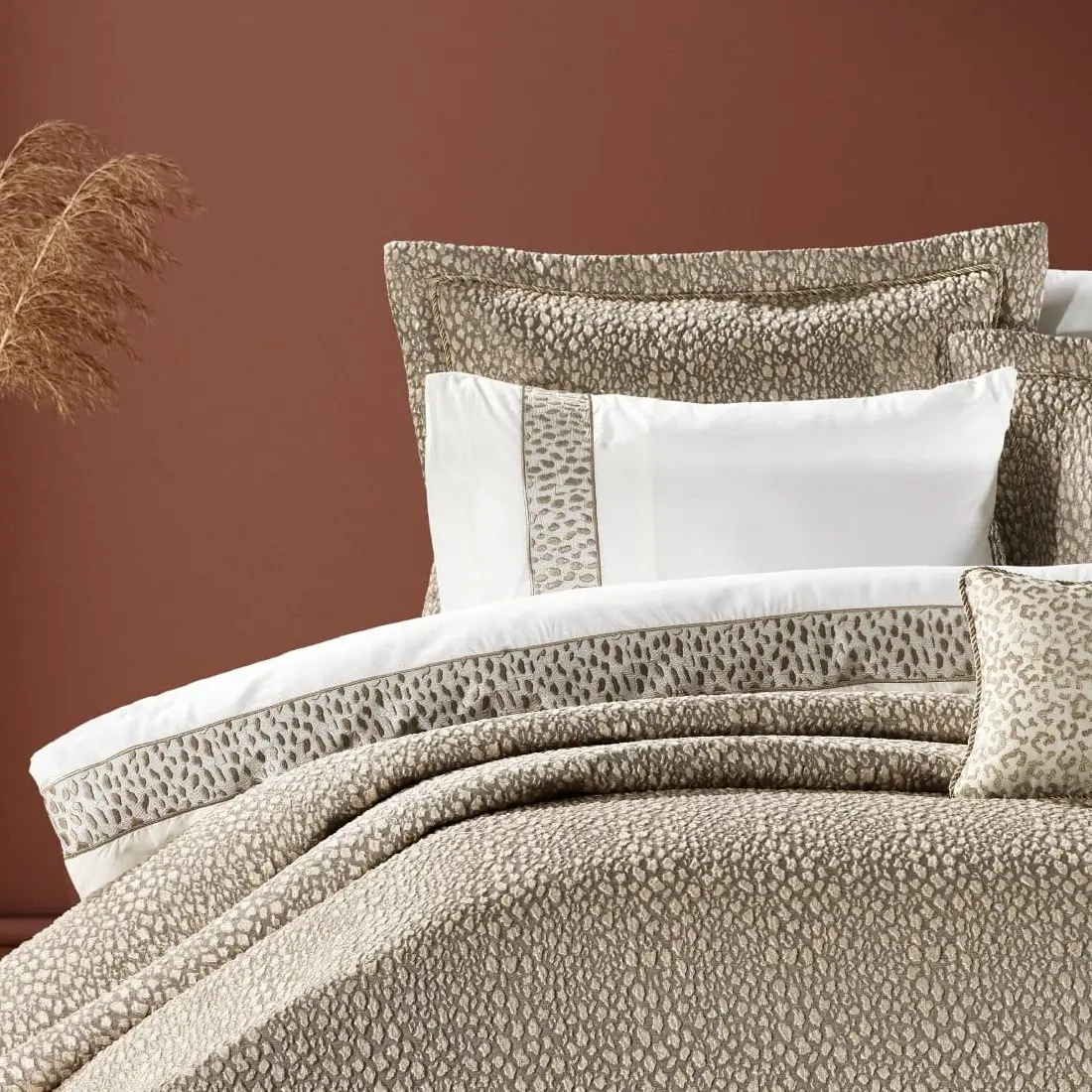 Pamuk saten nevresim takımı ve elyaf dolgulu polyester yatak örtüsüyle tasarlanan bu set, modası hiç geçmeyen leopar detaylı jakarlı deseni ile lüks ve ihtişamı bir arada sunar. Yumuşak dokusuyla konforu ve zarafeti yatak odanıza taşır.