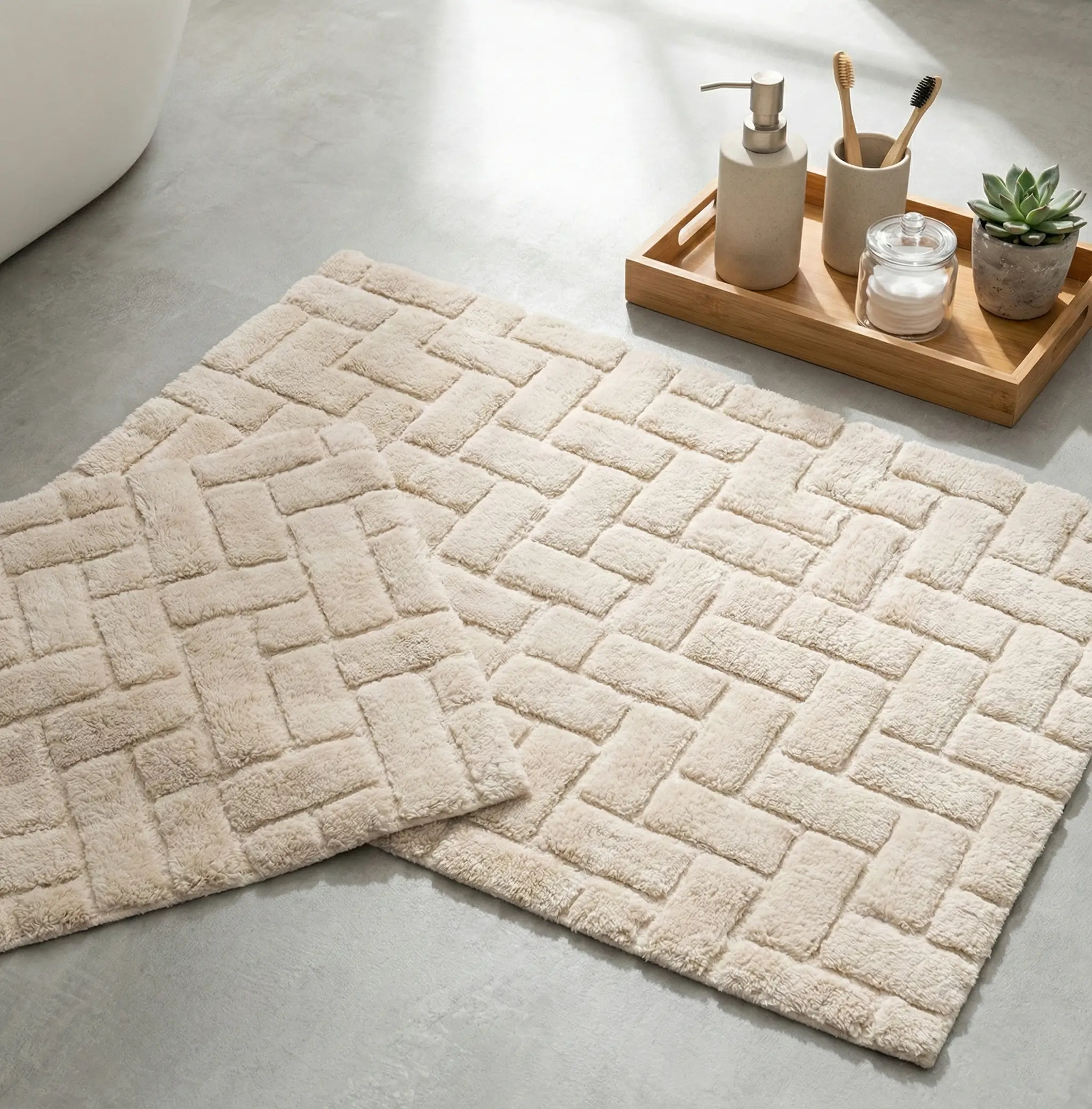 Felica 2'li Pamuk Paspas Takımı, her banyoya hitap eden desen ve renklerde sade tasarıma sahiptir.