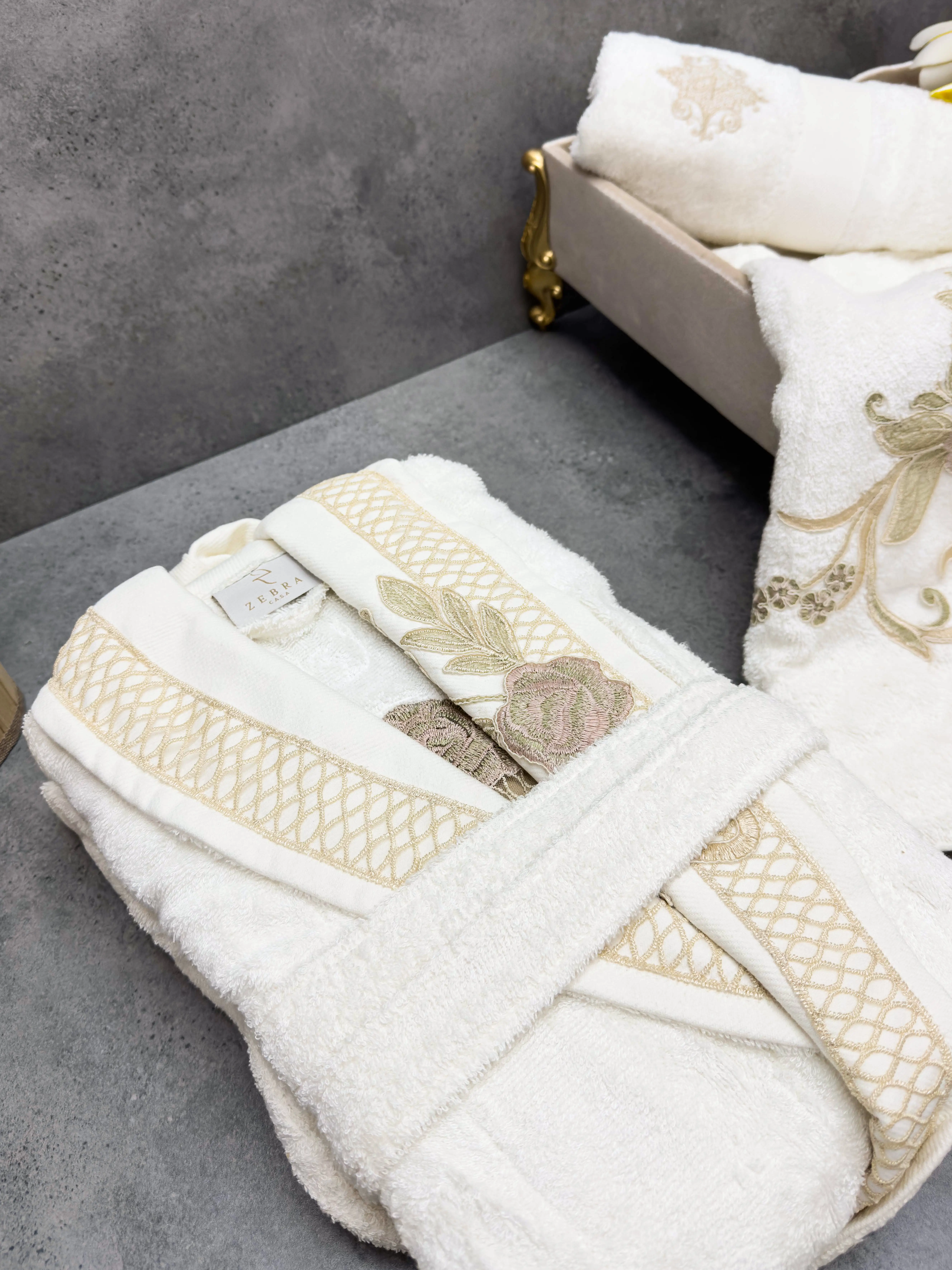 FLORA BAMBU DANTELLİ AİLE BORNOZ SETİ, Banyonuzda şıklık, konfor ve kaliteyi bir arada yaşamak için bu özel aile bornoz setini hemen sepetinize ekleyin.