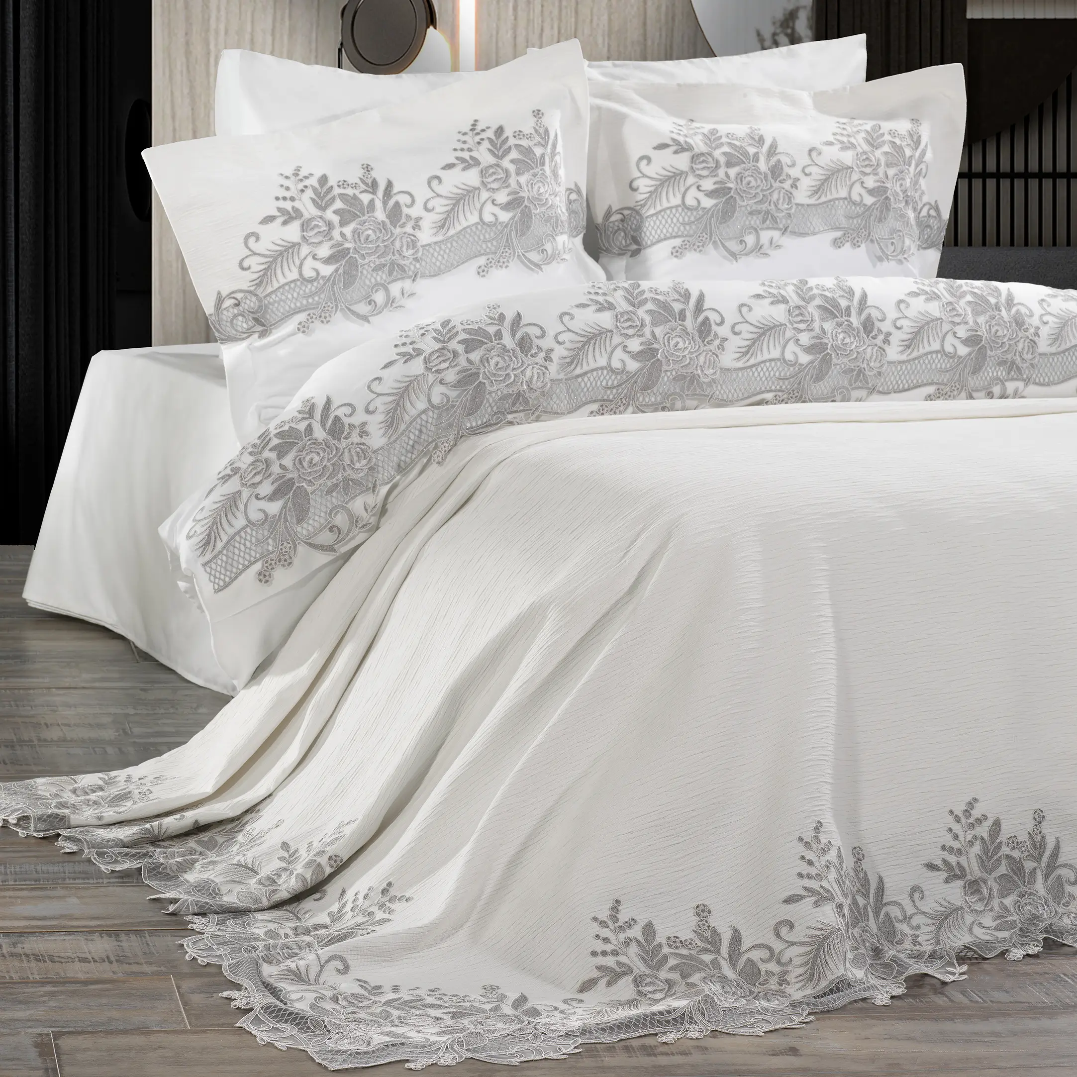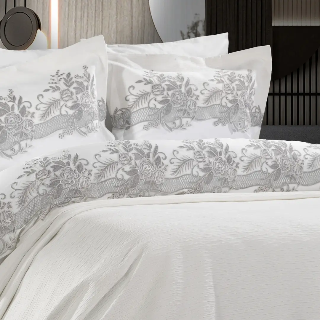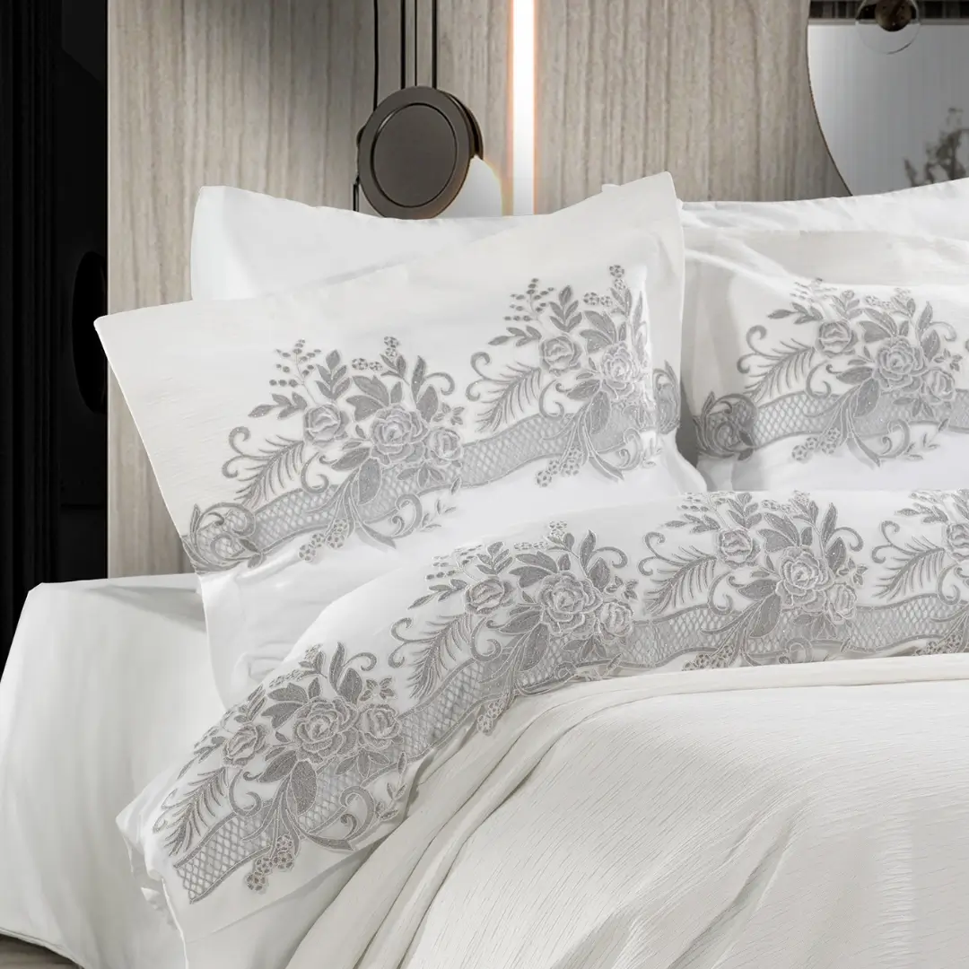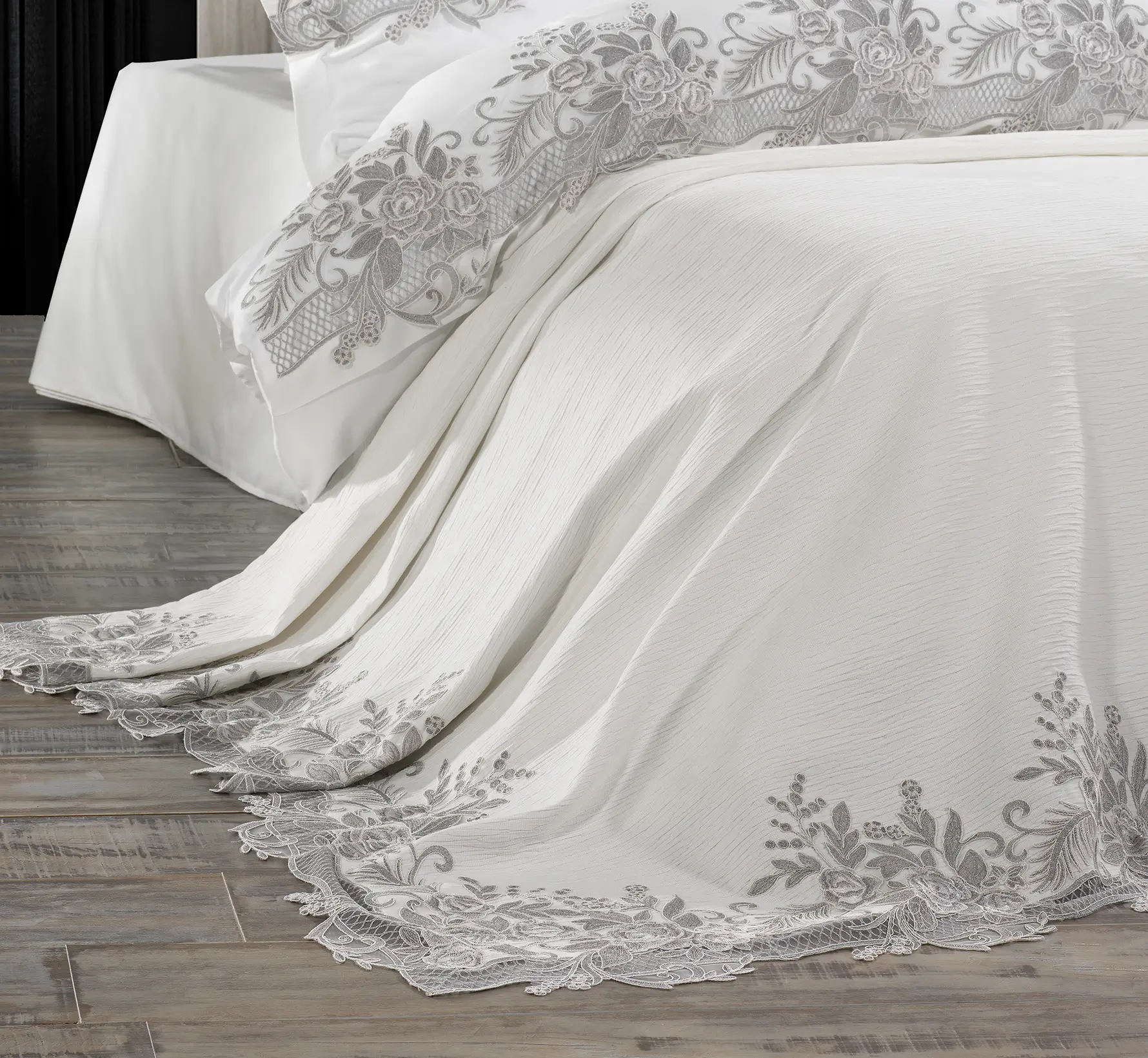 FLORA GRİ ÇİFT KİŞİLİK PİKE SETİ, Dantel detaylarıyla yatak odanızda klasiklerin havasını yakalayın.