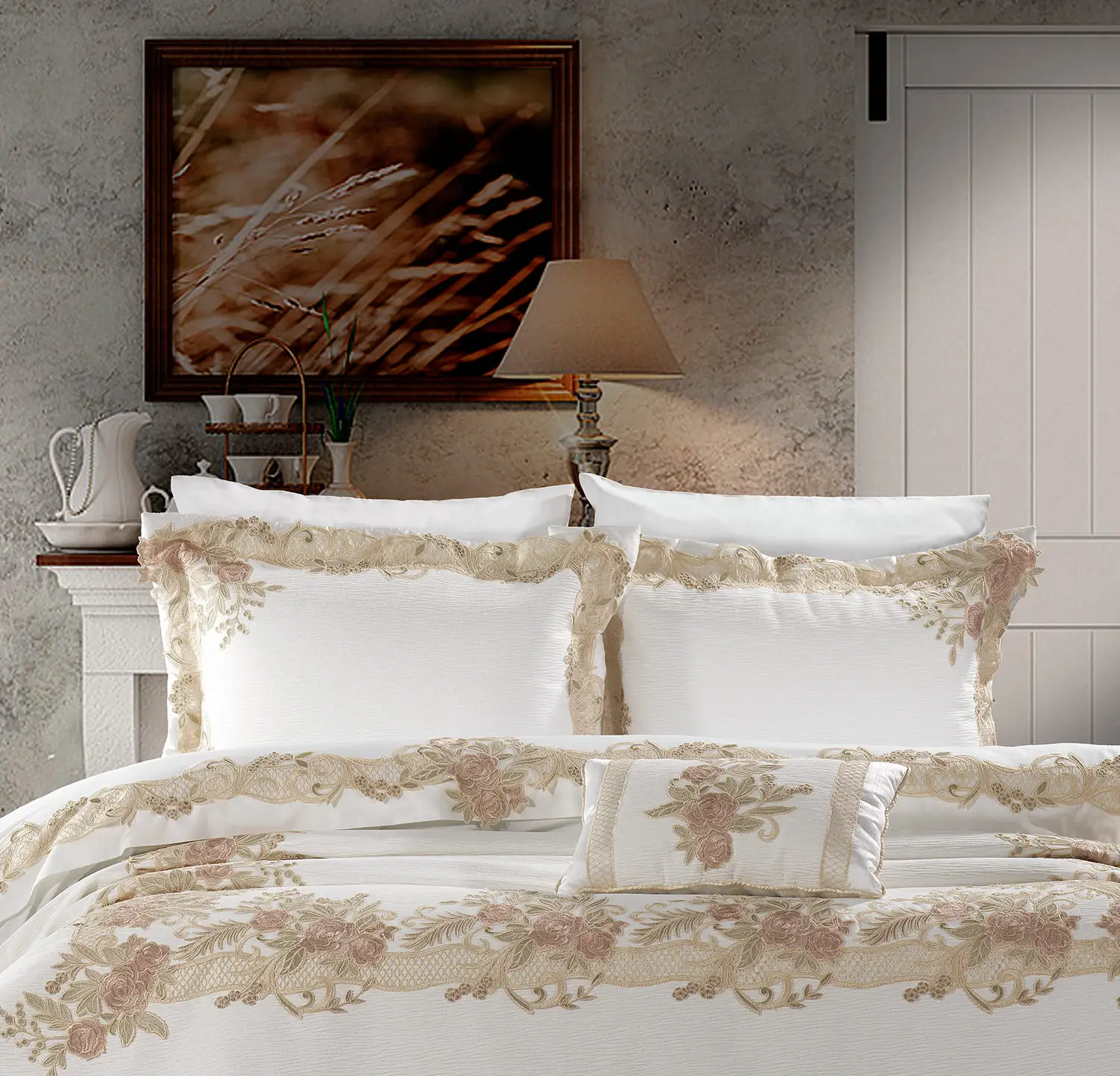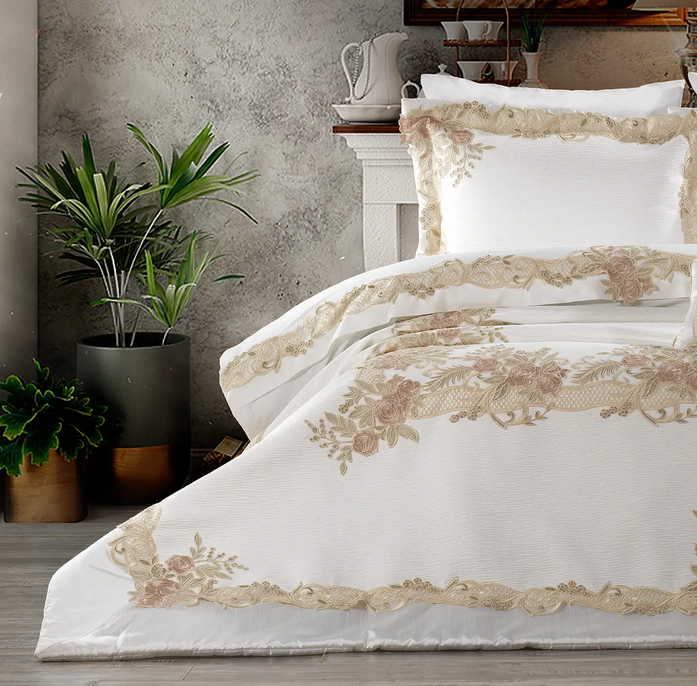 Caroline 4 Parça Yatak Örtüsü / Bej