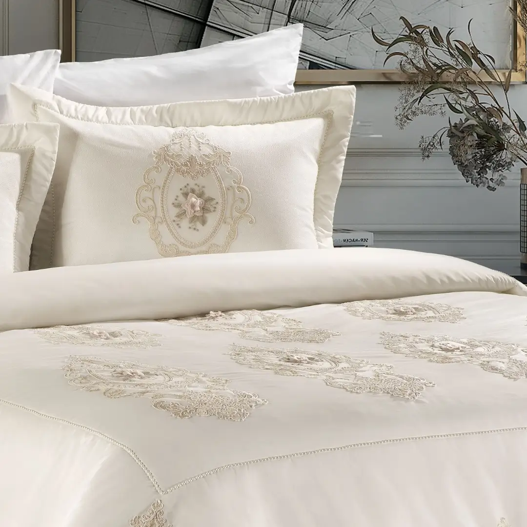 Caroline 4 Parça Yatak Örtüsü / Bej