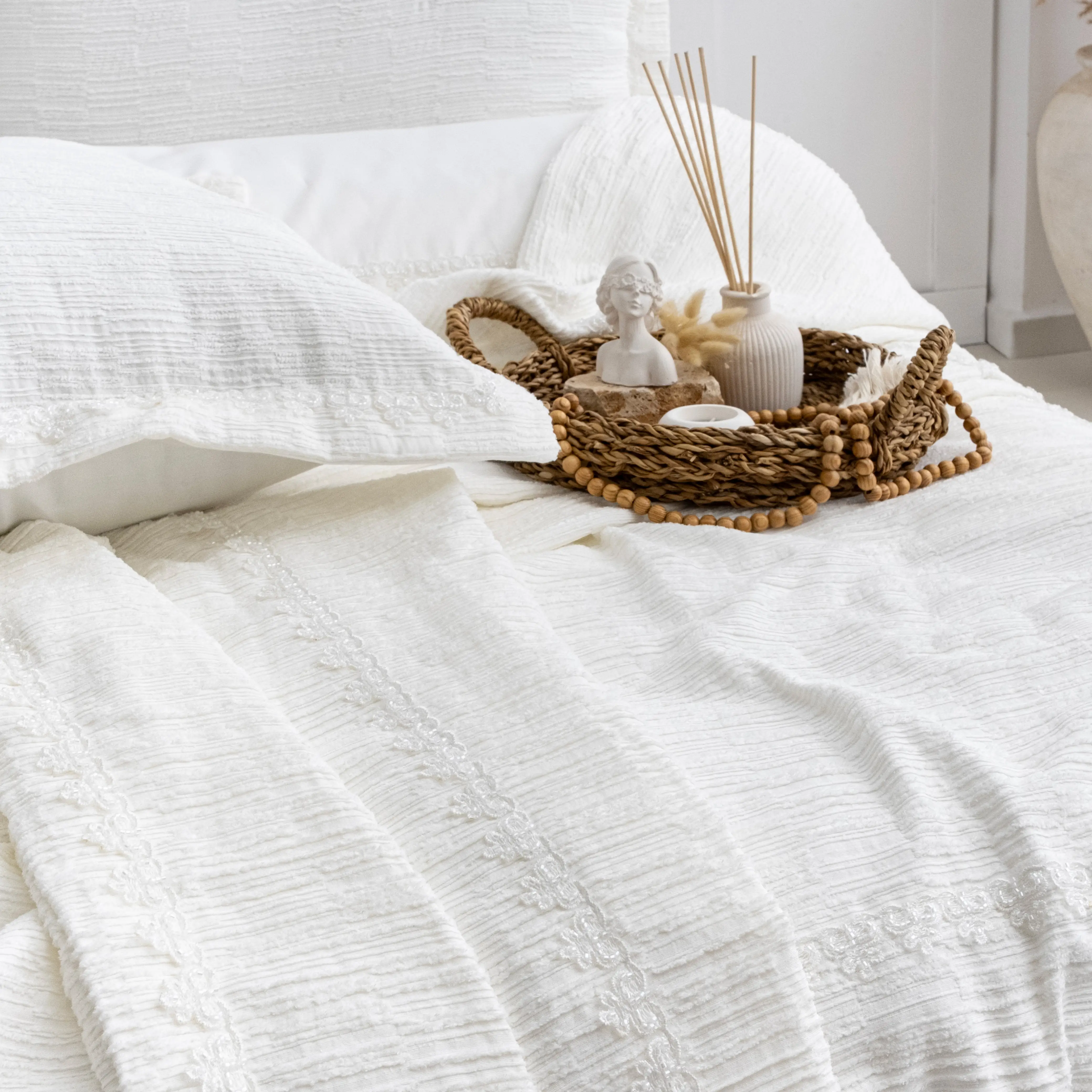 GABRIELA 7 PARÇA PİKE SETİ / KREM, Minimalist ama şık detaylarıyla odanızı olduğundan daha aydınlık ve ferah gösterecek.