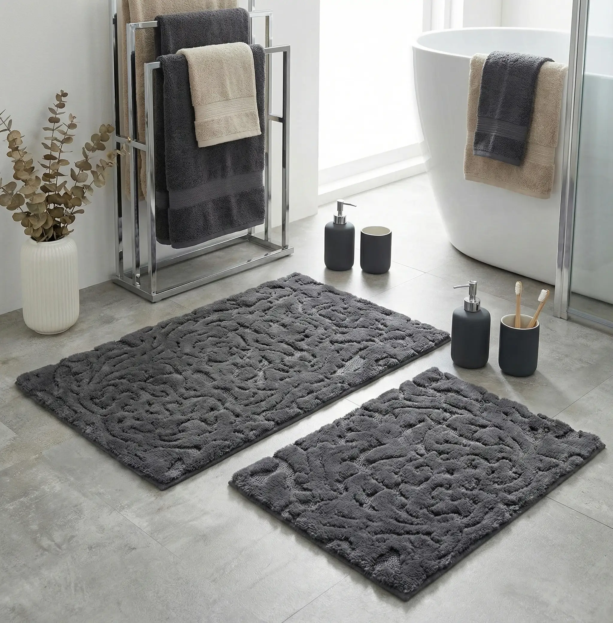 Haly 2'li Pamuk Paspas Takımı, her banyoya hitap eden desen ve renklerde sade tasarıma sahiptir.