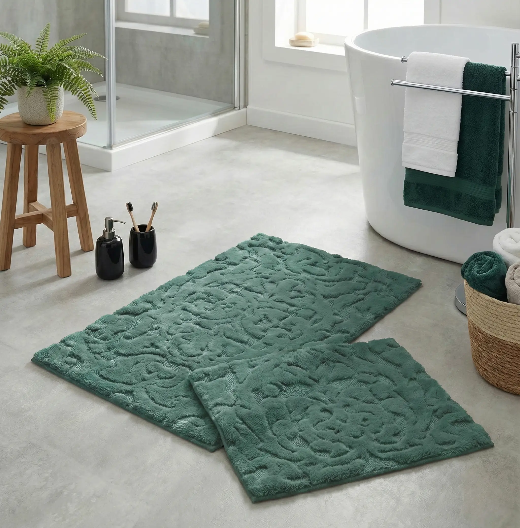 Haly 2'li Pamuk Paspas Takımı, her banyoya hitap eden desen ve renklerde sade tasarıma sahiptir.