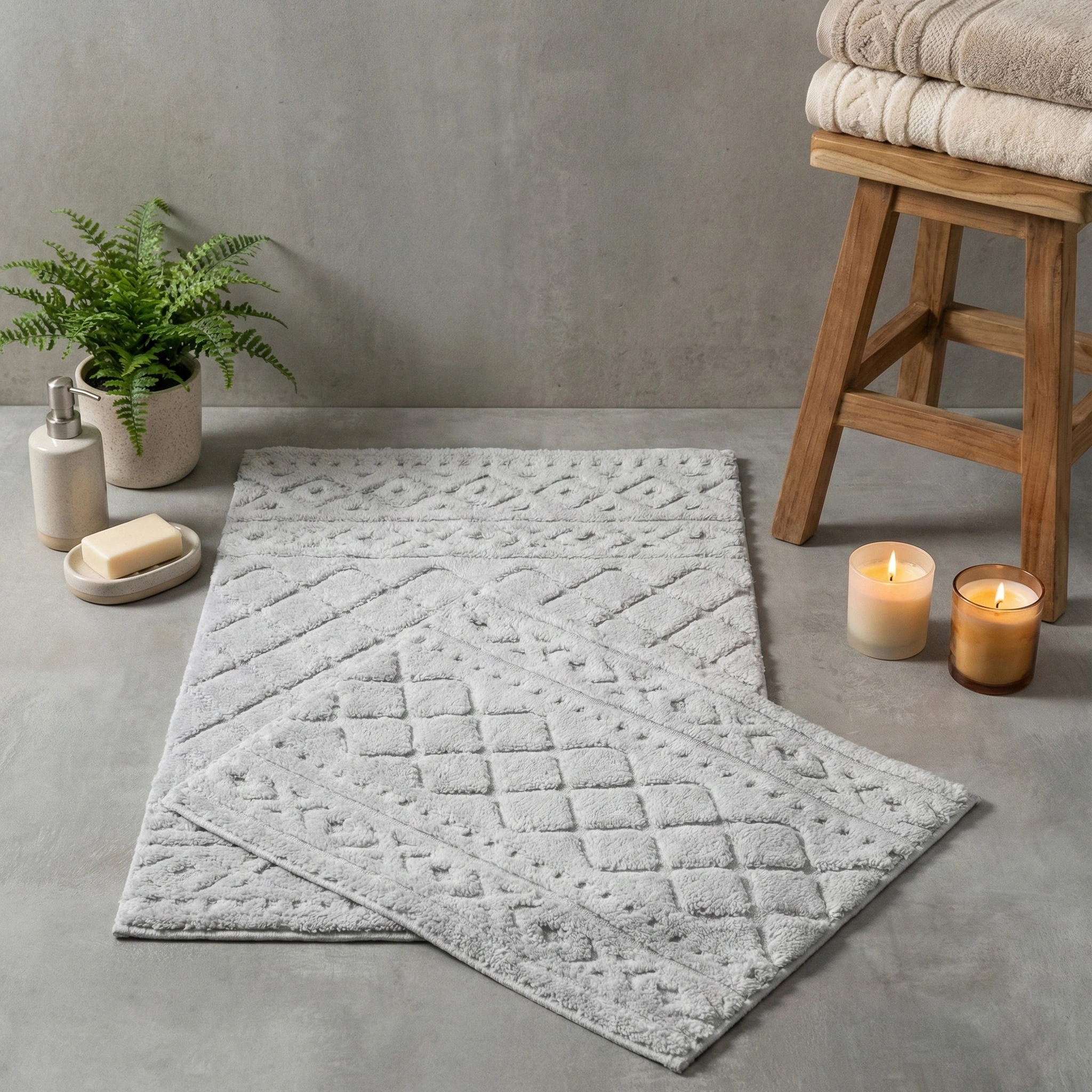 Henra 2'li Pamuk Paspas Takımı, her banyoya hitap eden desen ve renklerde sade tasarıma sahiptir.