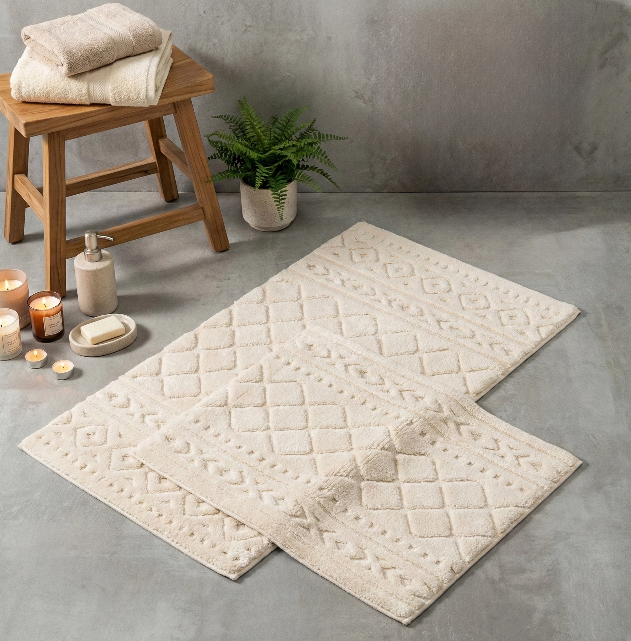 Henra 2'li Pamuk Paspas Takımı, her banyoya hitap eden desen ve renklerde sade tasarıma sahiptir.
