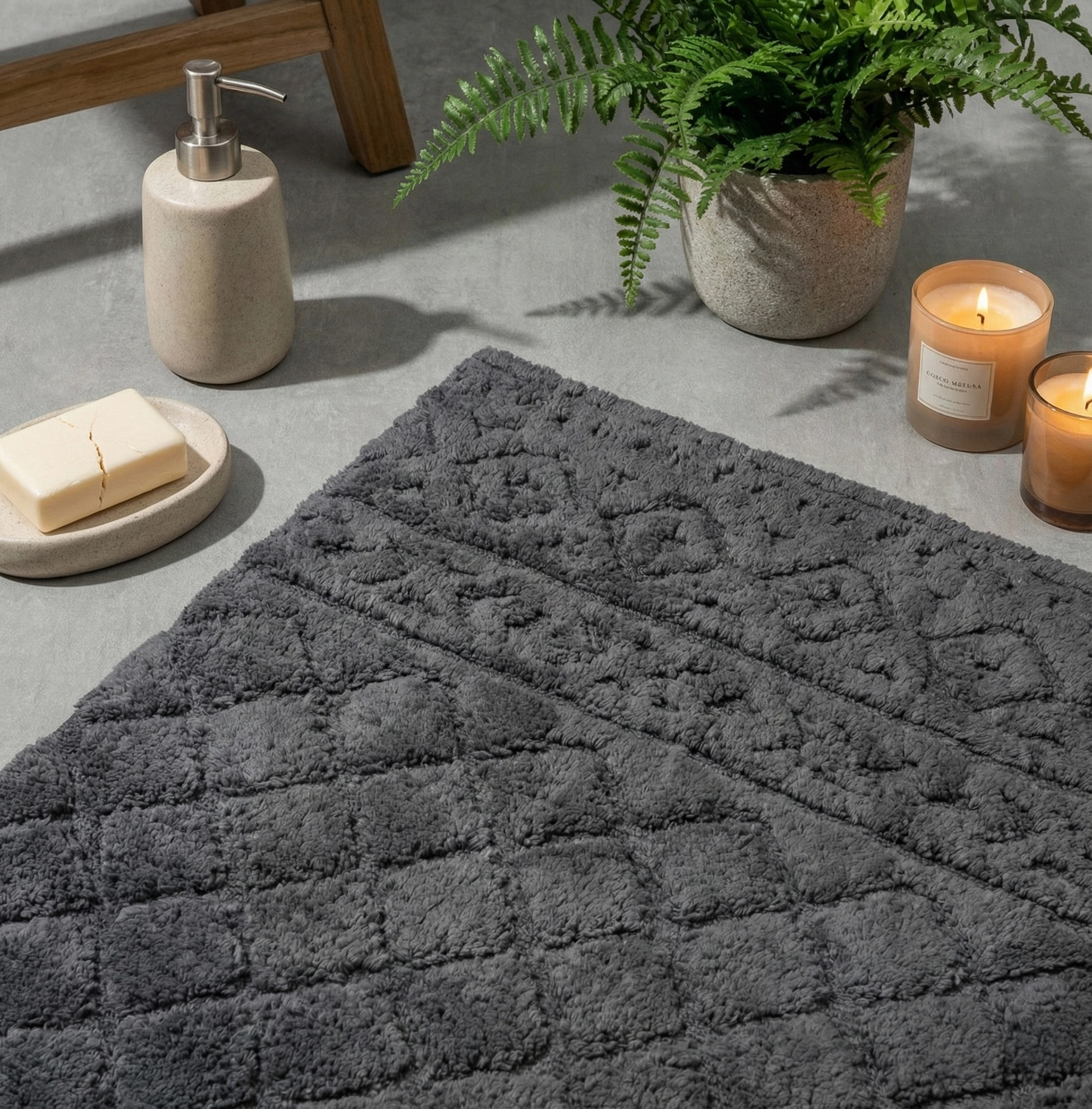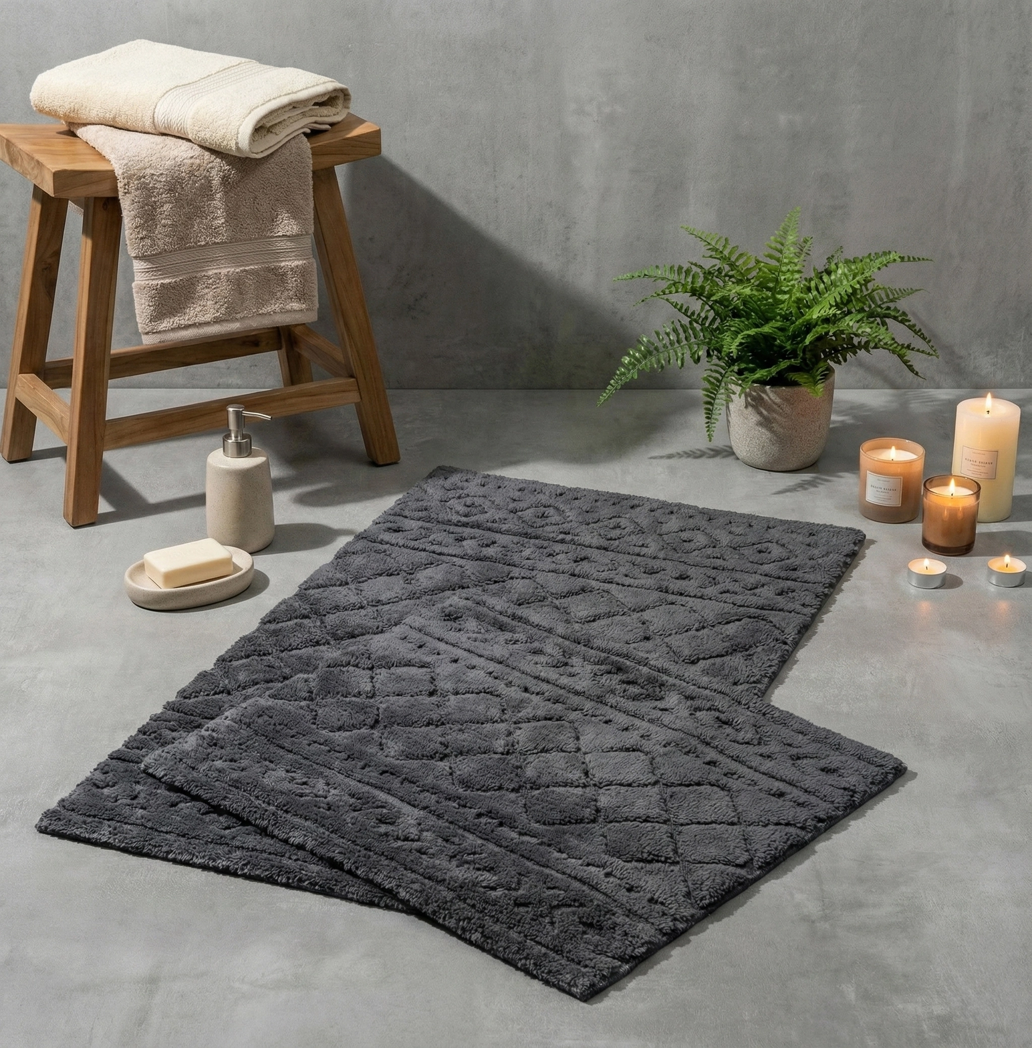 Henra 2'li Pamuk Paspas Takımı, her banyoya hitap eden desen ve renklerde sade tasarıma sahiptir.