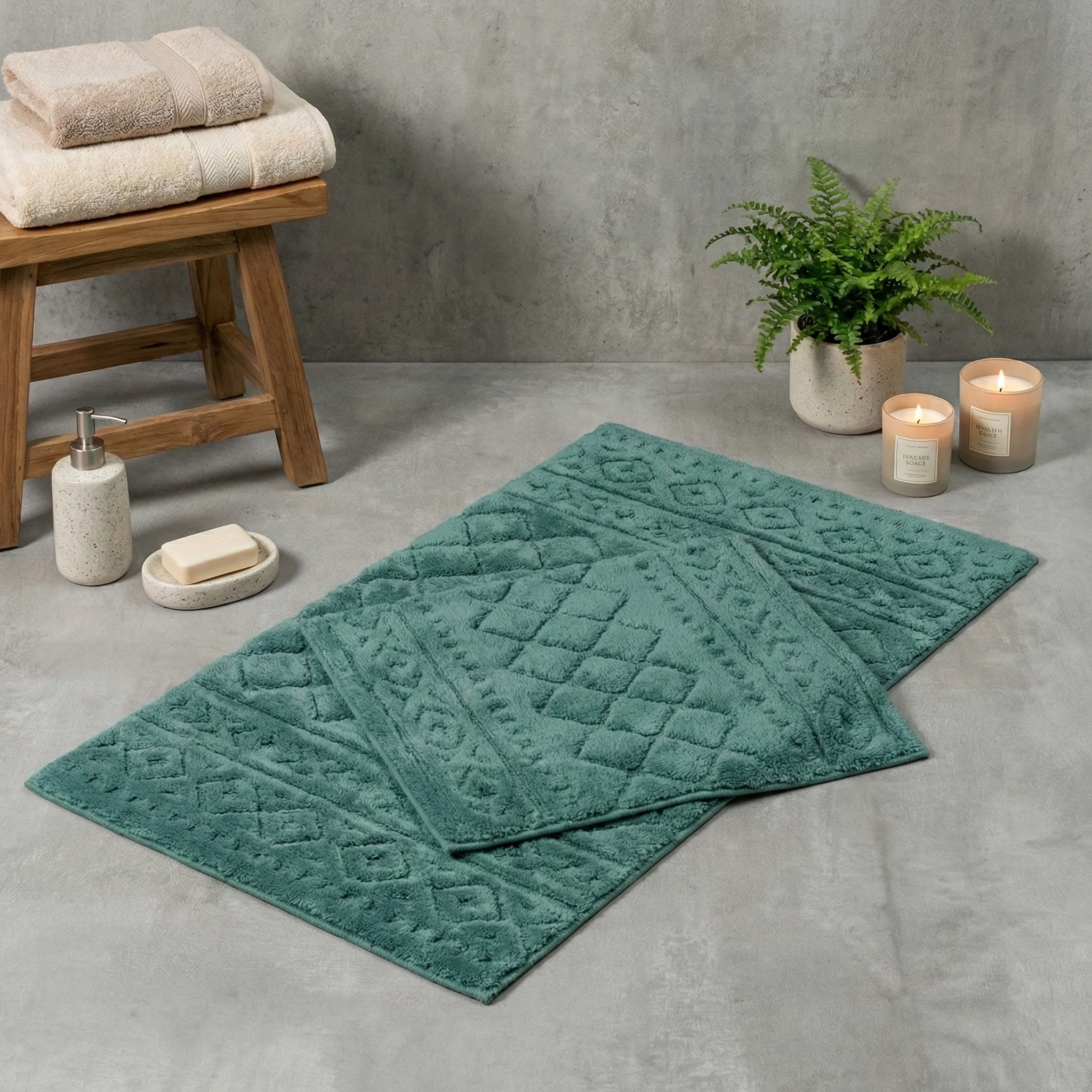 HENRA 2'Lİ PAMUK PASPAS TAKIMI, 5 farklı renk seçeneği ile banyonuza renk katın