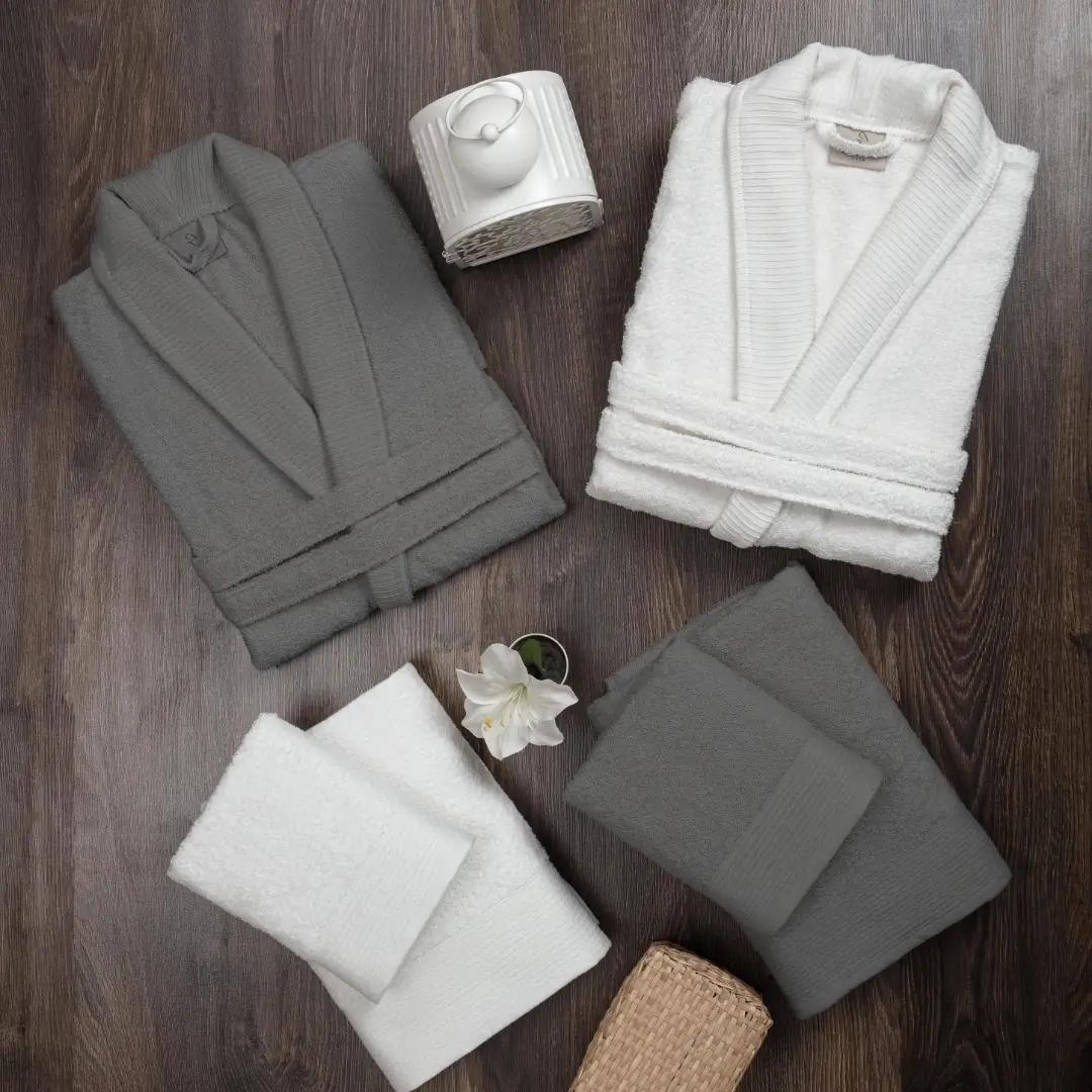 HERA 6 PARÇA PAMUK AİLE BORNOZ SETİ, yüksek kalitede pamuk içeriğiyle banyo sonrasında yumuşacık bir konfor sunar.