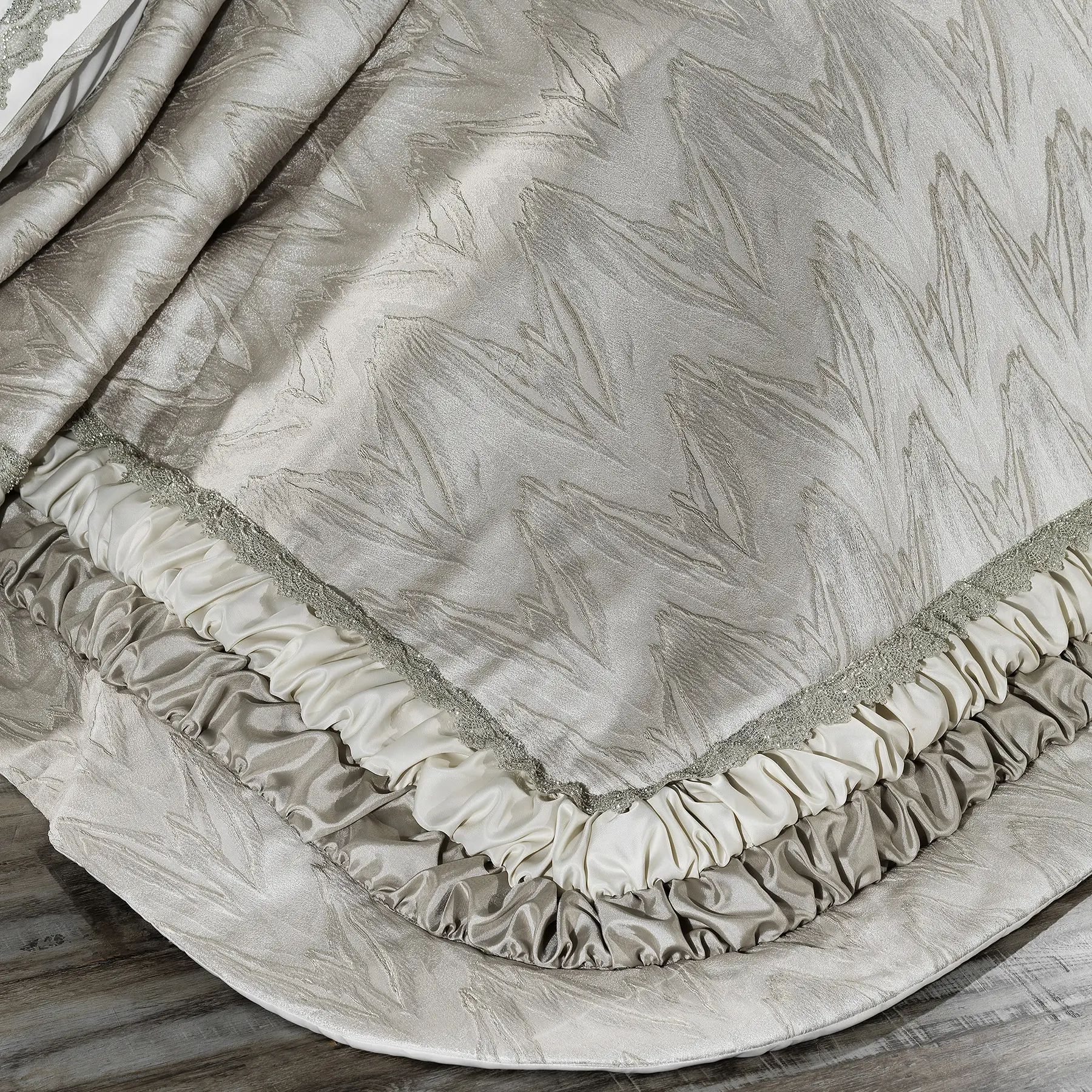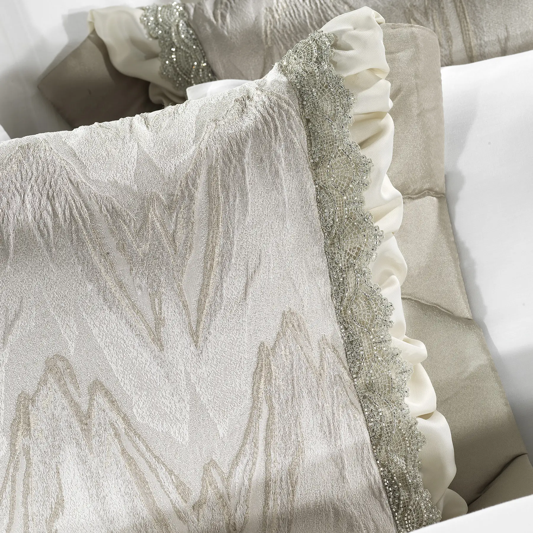 HOLLY YATAK SETİ 11 PARÇA BEJ, Lüks Jakarlı Fırfırlı Yatak Seti – Zarif Dokunuşlarla Şıklığı Yakalayın!