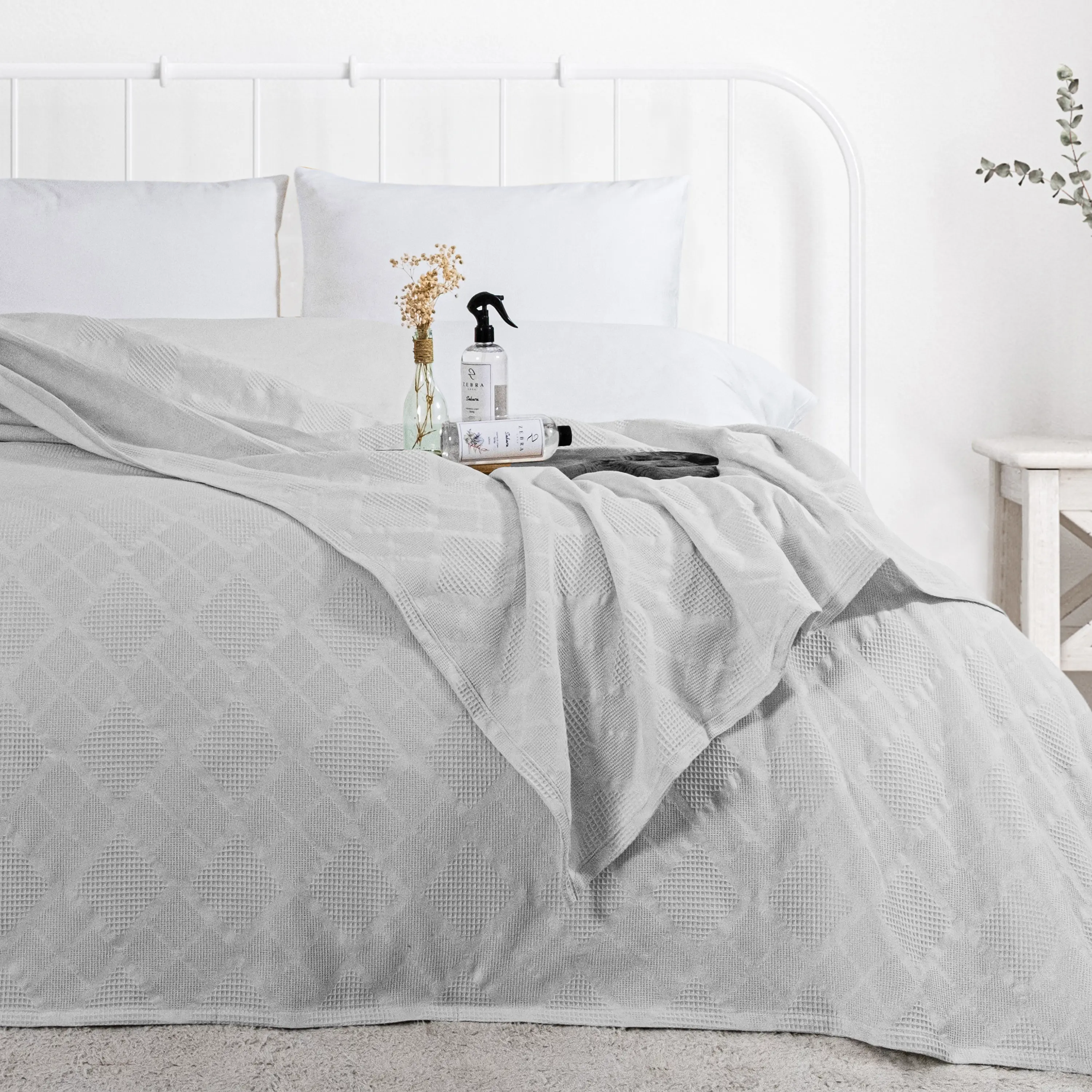Jakar Tek Kişilik Pamuk Pike / Gri ve 400 ml Oda Kokusu