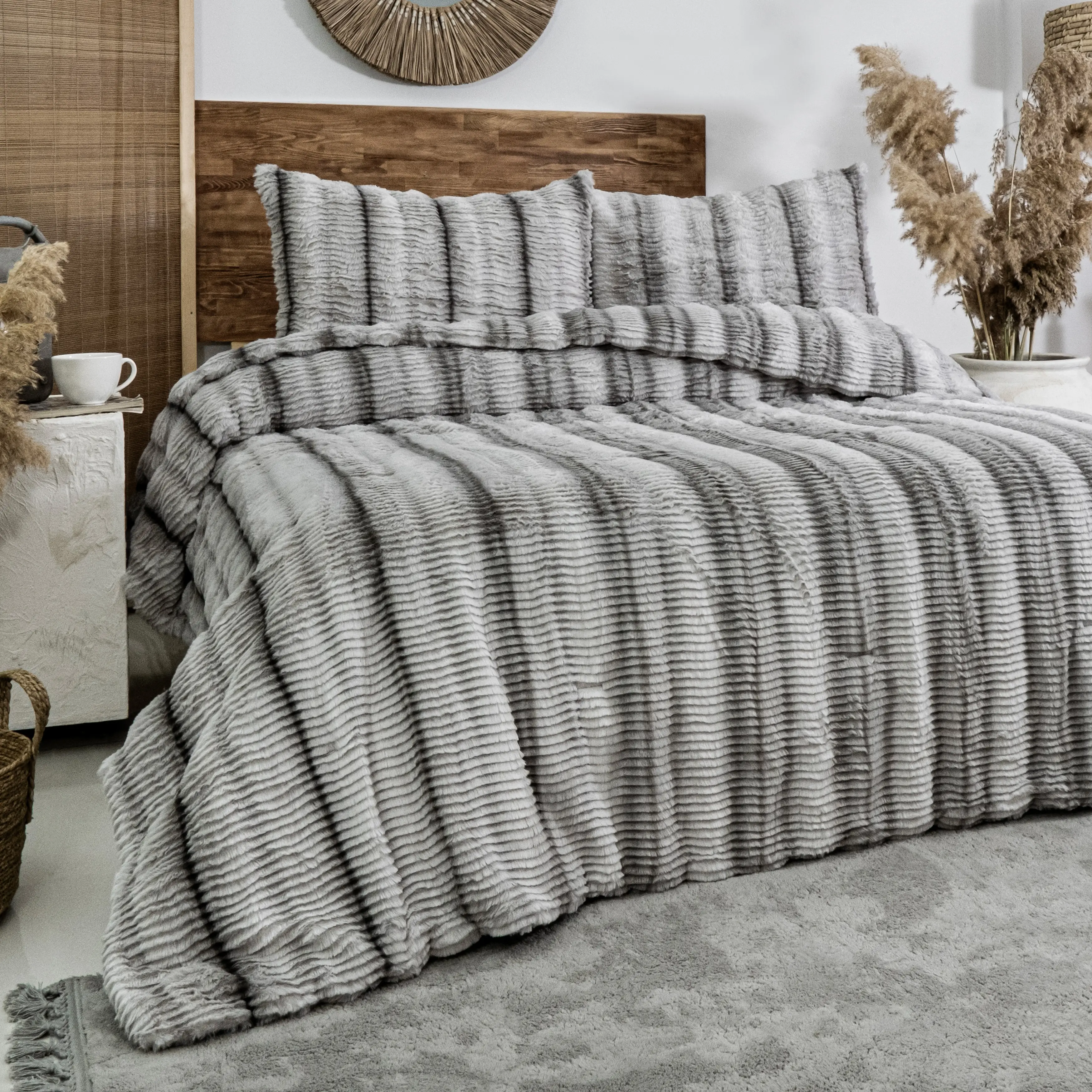 JENNY ÇİFT KİŞİLİK COMFORTER SET / GRİ, Şıklık, sıcaklık ve konforu tek üründe buluşturan bu peluş yatak örtüsü seti ile kış aylarında yatak odanızı yenileyin.