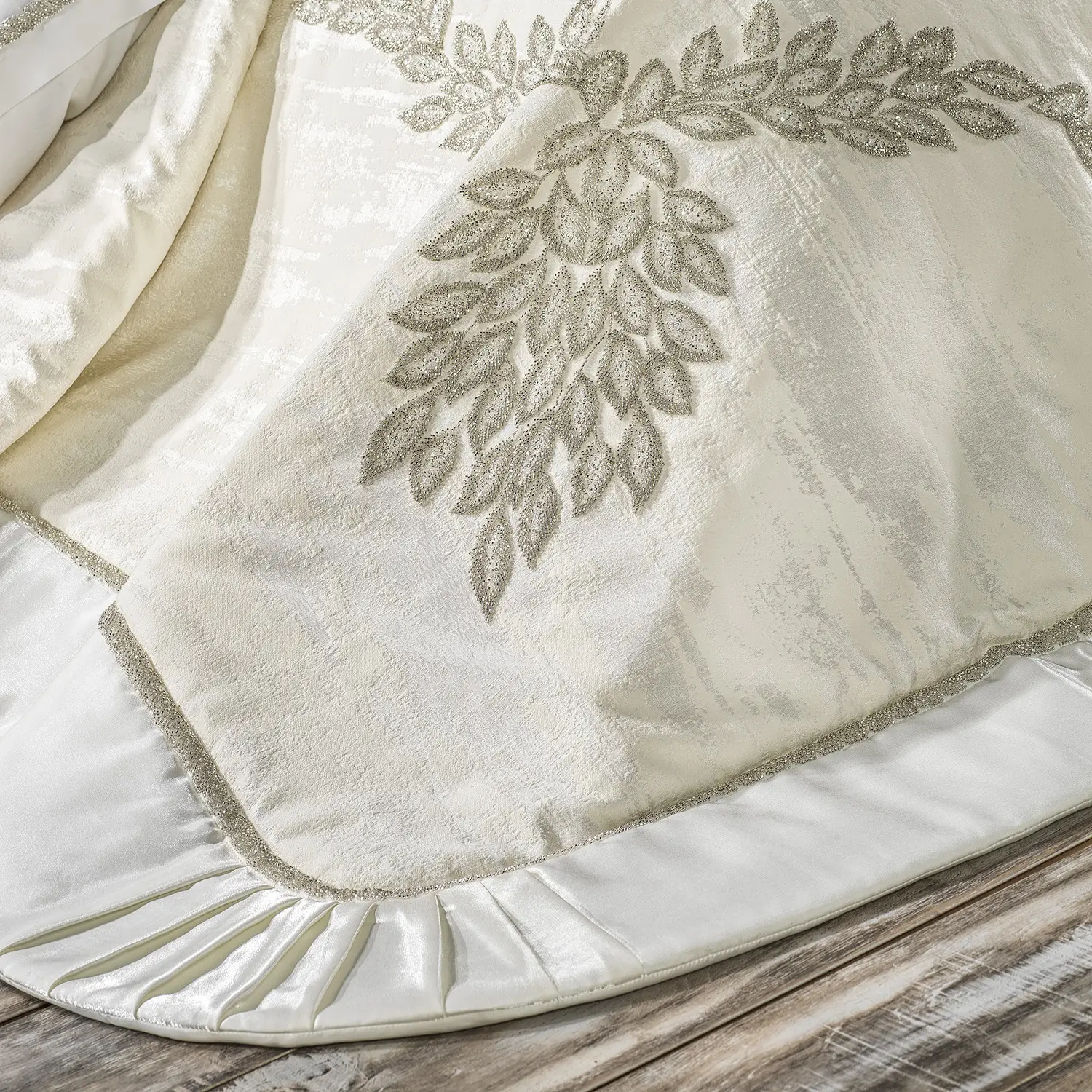 Krem zemin üzerine işlenmiş gümüş yaprak motifleri ile asil bir görünüm sunar.
