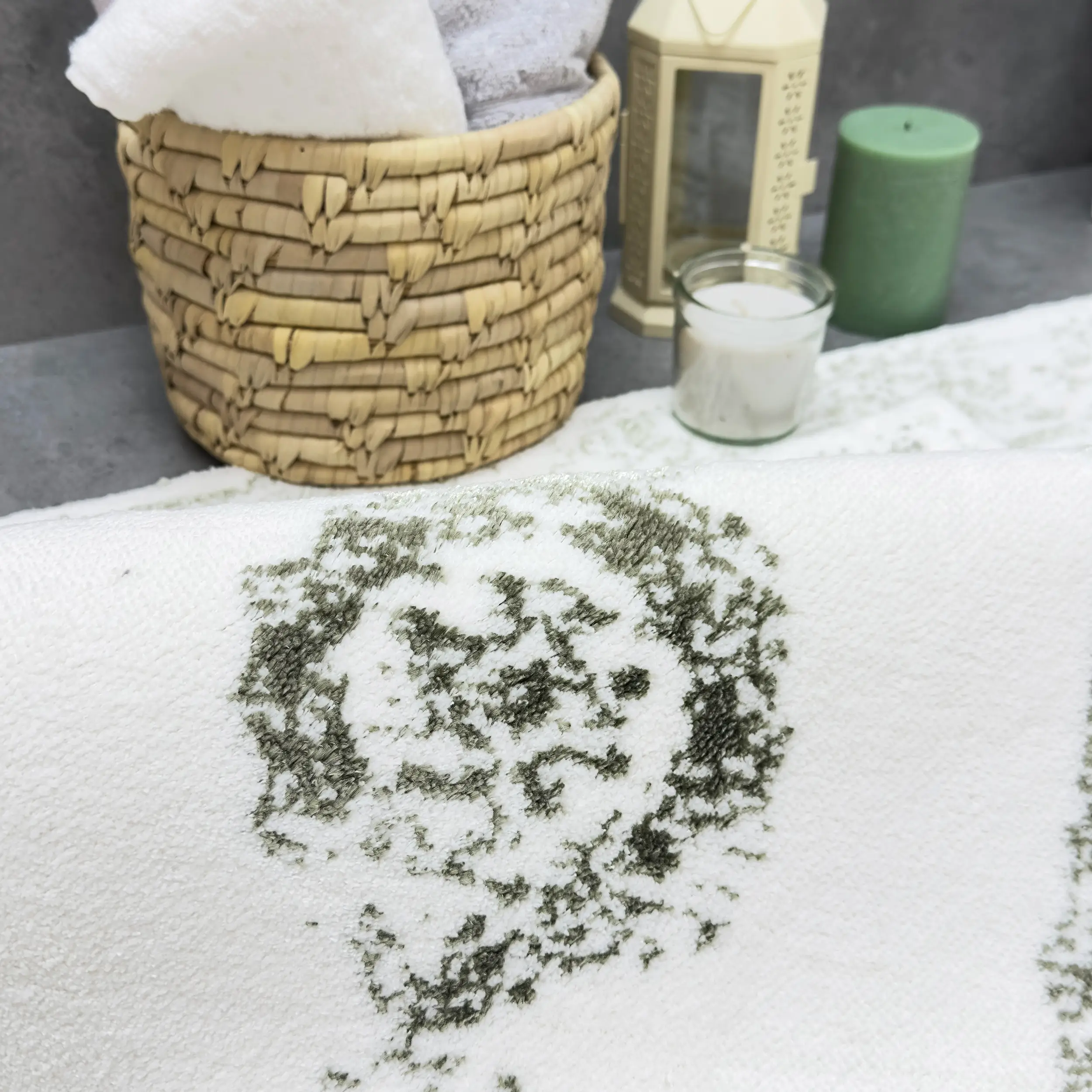 Yüksek kaliteli pamuk dokusu sayesinde su emiciliği yüksektir, bu da özellikle banyoda kullanım için idealdir.