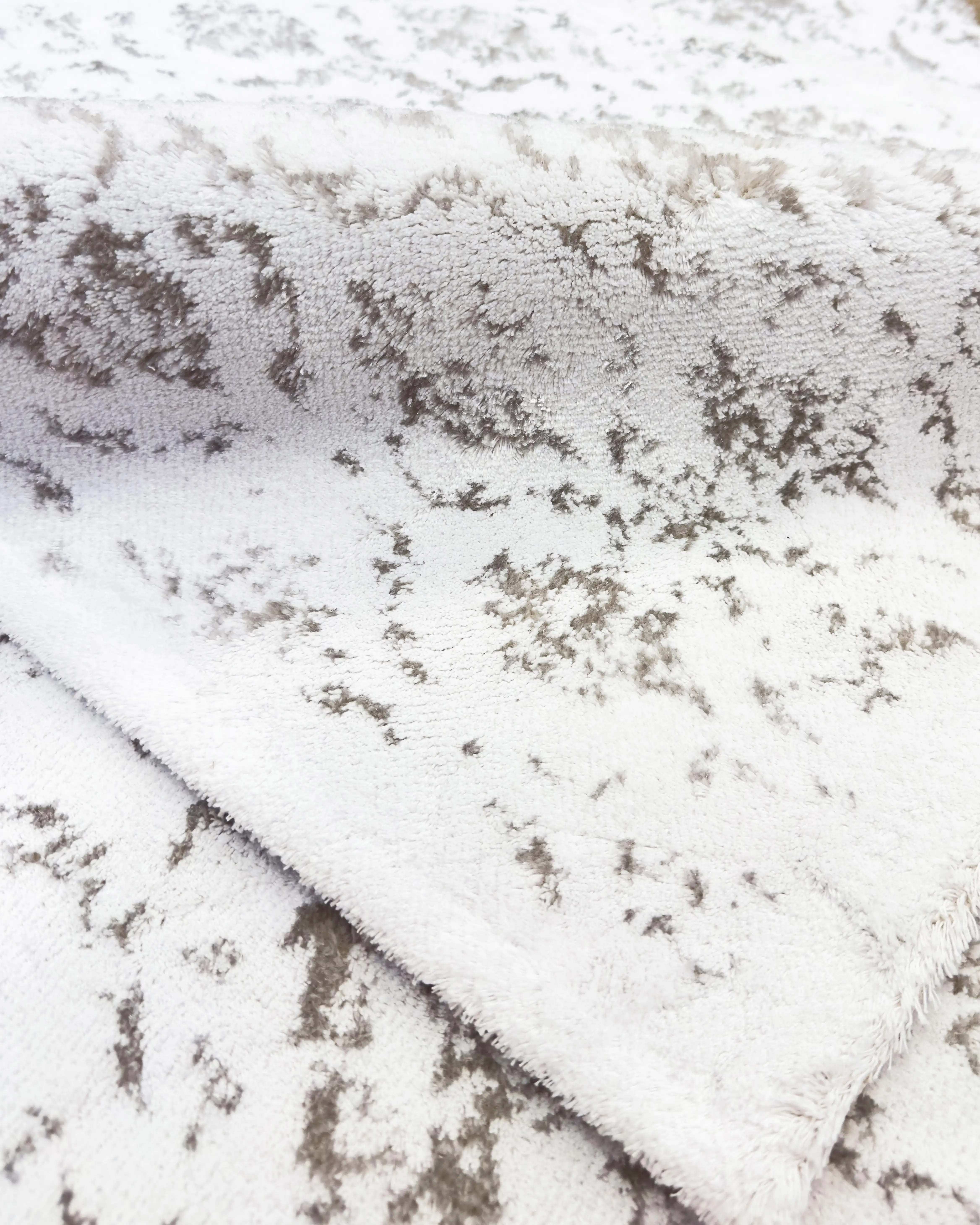 Üzerinde floş iplik kullanılarak işlenmiş, hafif parlak efektli desenleri bulunur.