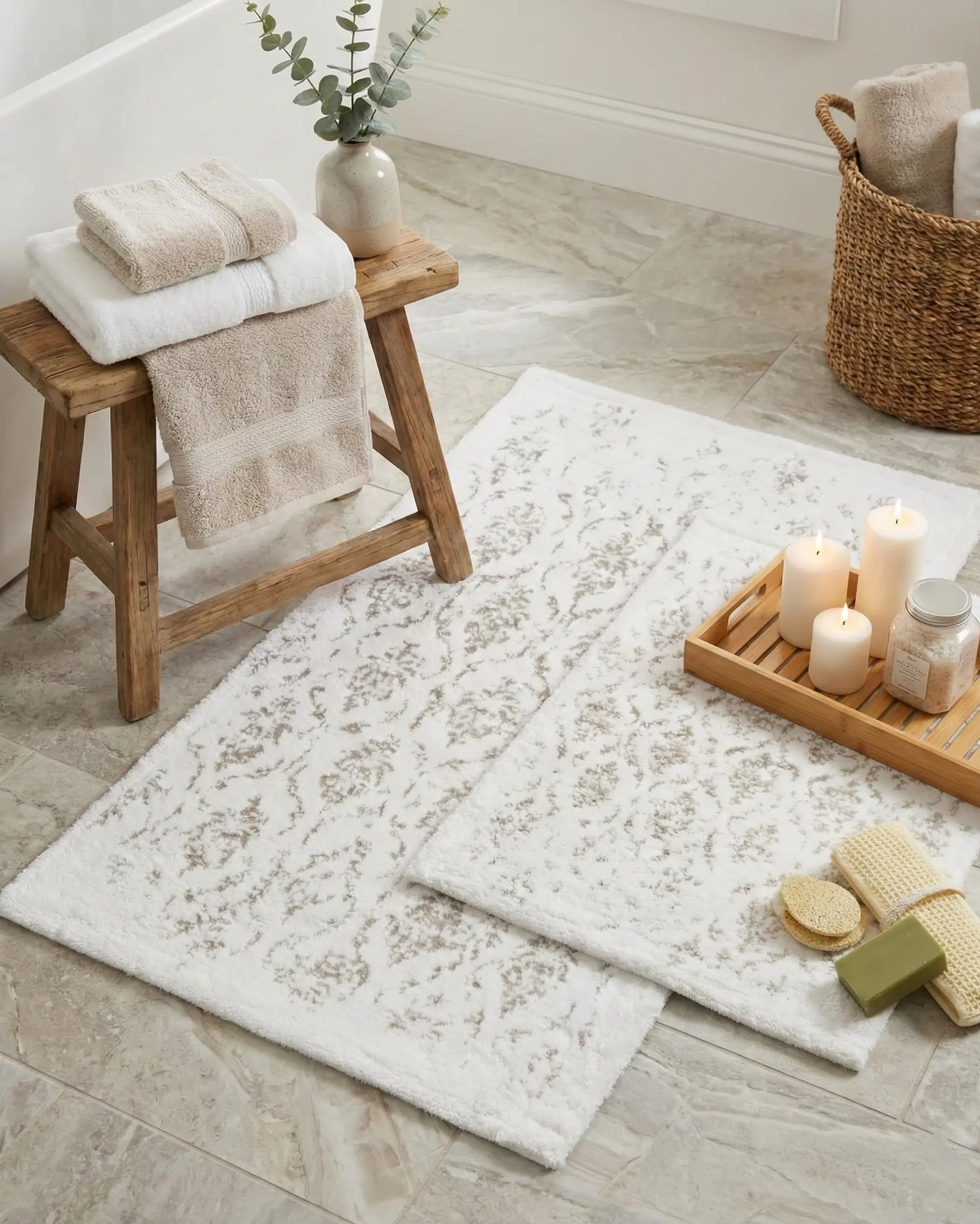 KERRY 2'Lİ PASPAS TAKIMI, bu zarif paspas seti, Pamuk - viskon ipliğinden üretilmiş olup, yumuşak dokusu sayesinde konforlu bir kullanım sunar. Alt kısmı halı tabanlıdır, bu sayede kaymaz özelliğe sahiptir ve güvenli bir kullanım sağlar.