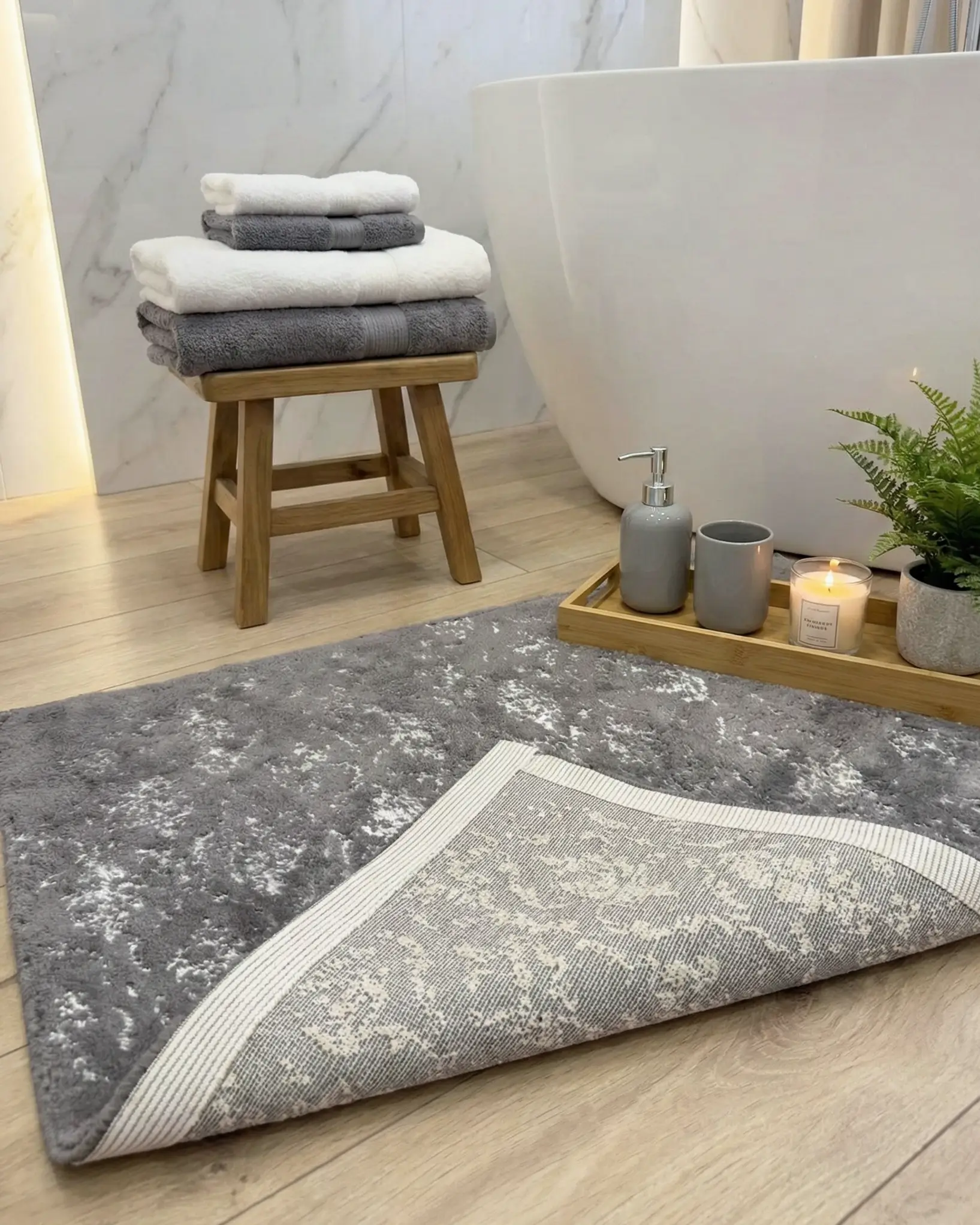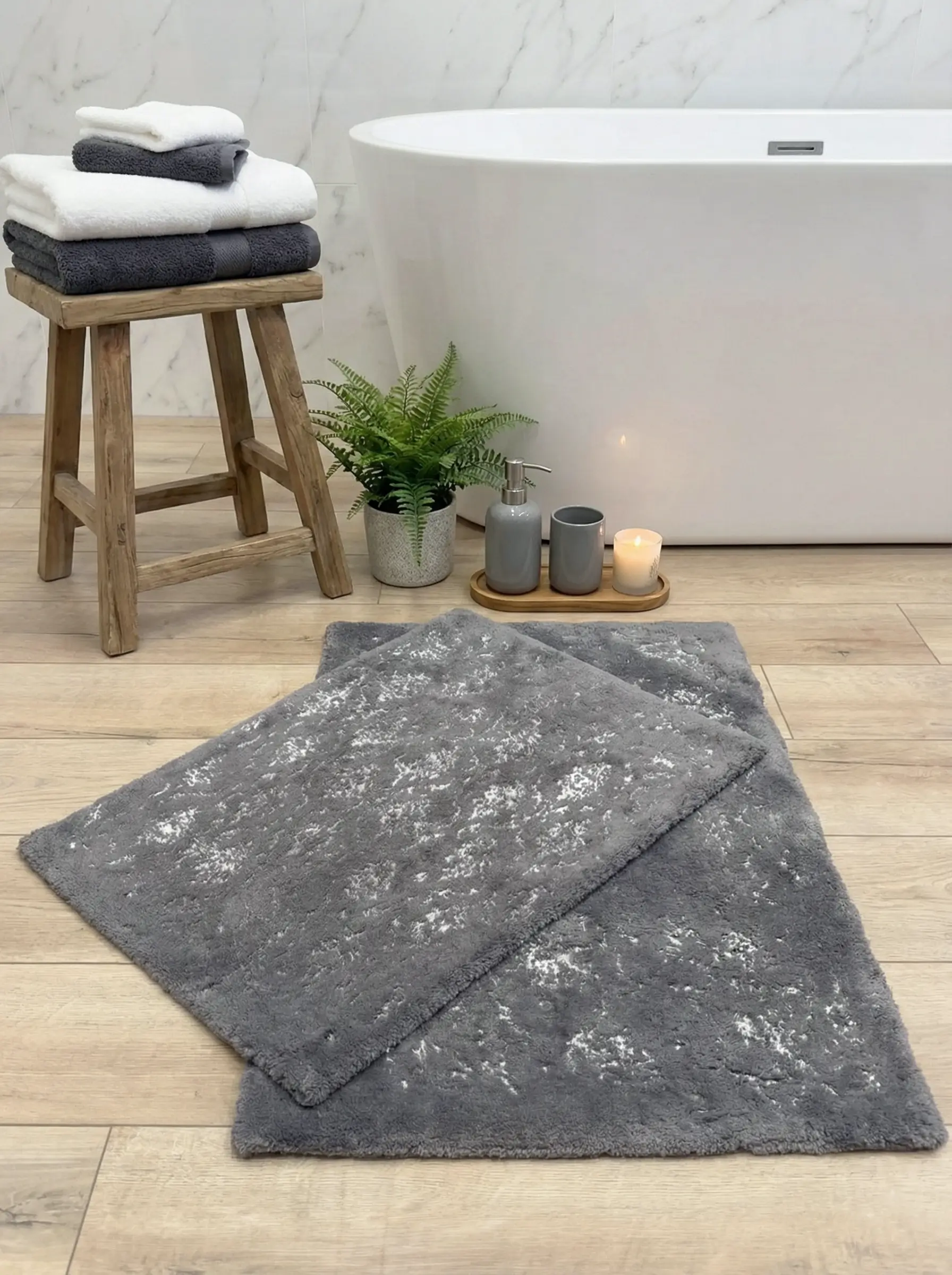 KERRY 2'Lİ PASPAS TAKIMI, bu zarif paspas seti, Pamuk - viskon ipliğinden üretilmiş olup, yumuşak dokusu sayesinde konforlu bir kullanım sunar. Alt kısmı halı tabanlıdır, bu sayede kaymaz özelliğe sahiptir ve güvenli bir kullanım sağlar.
