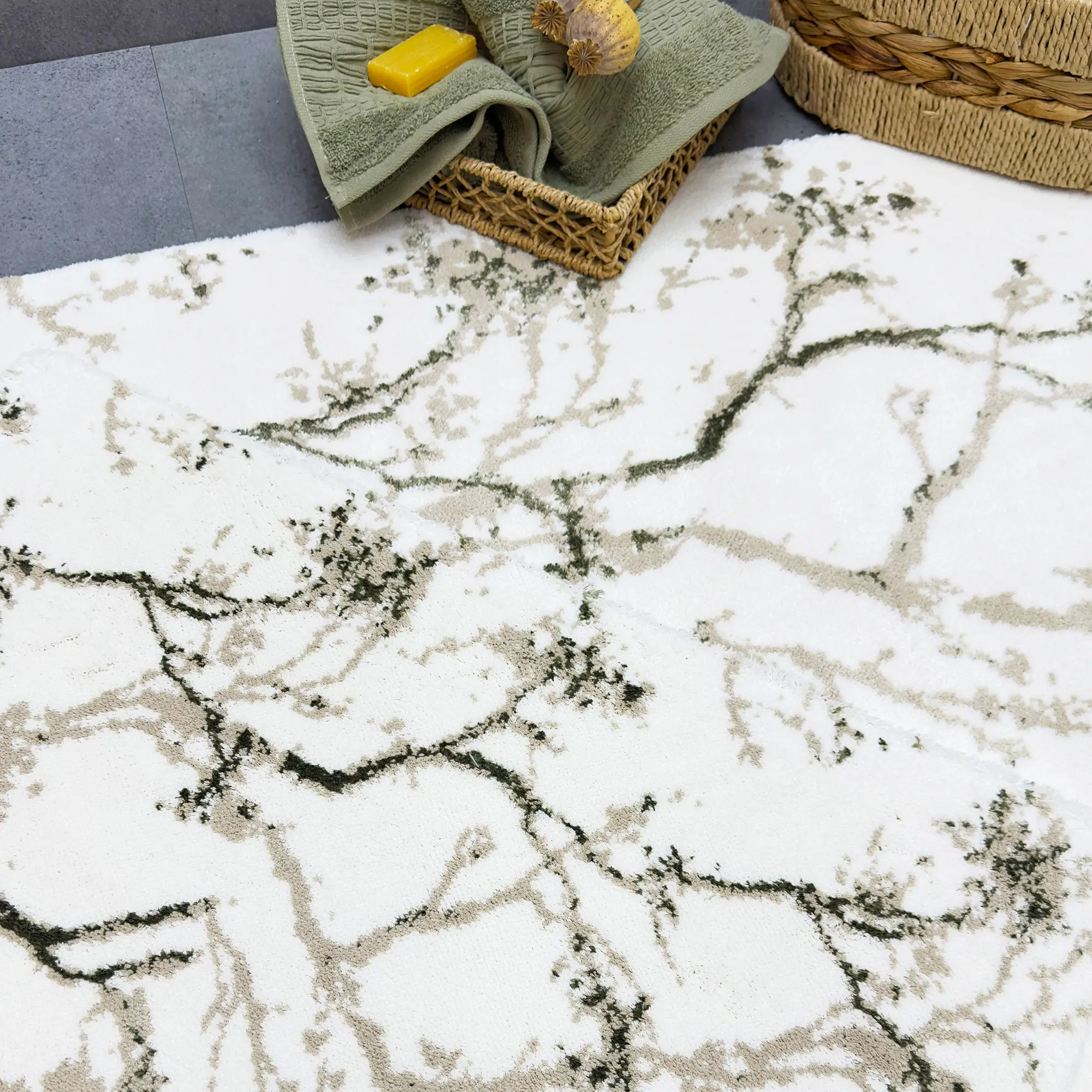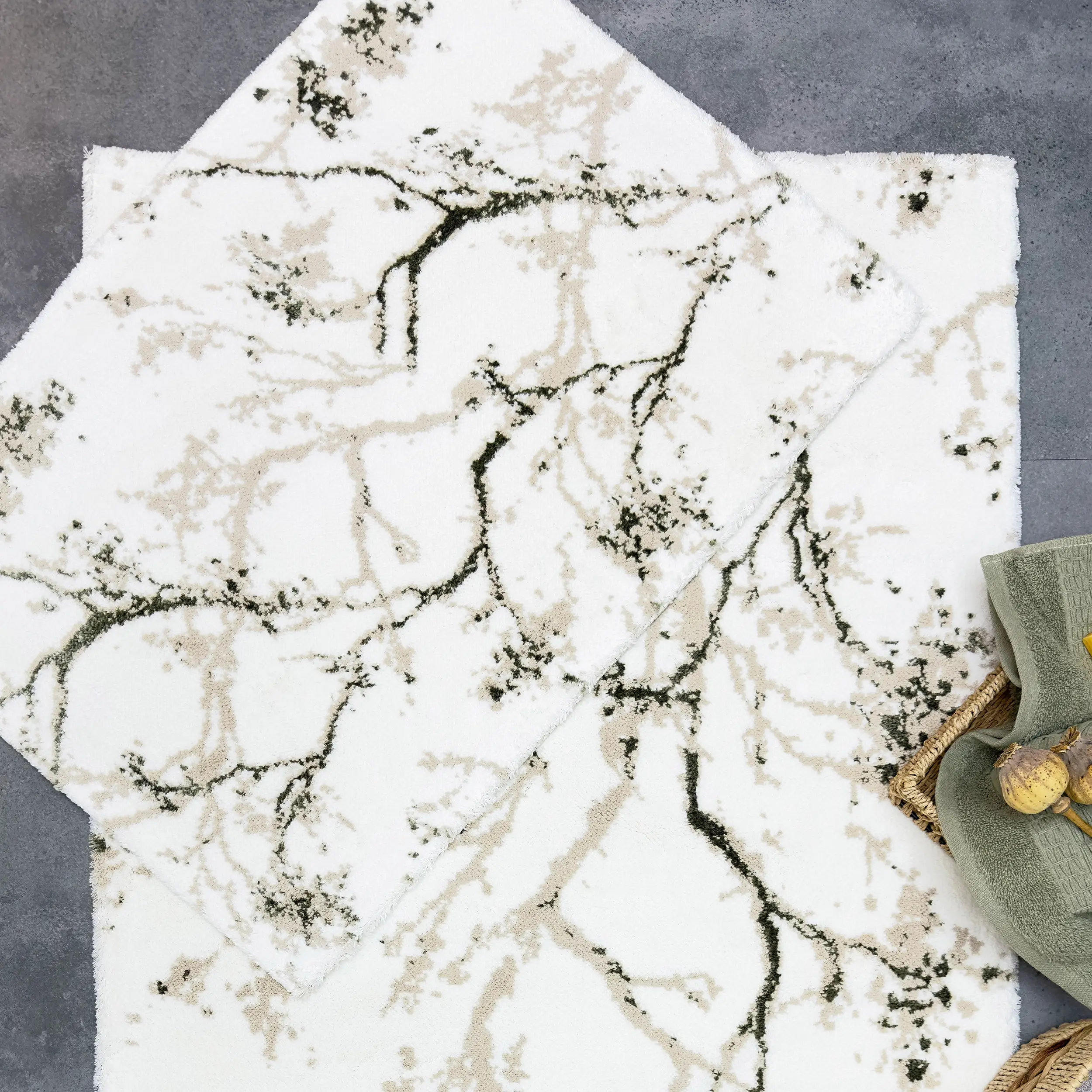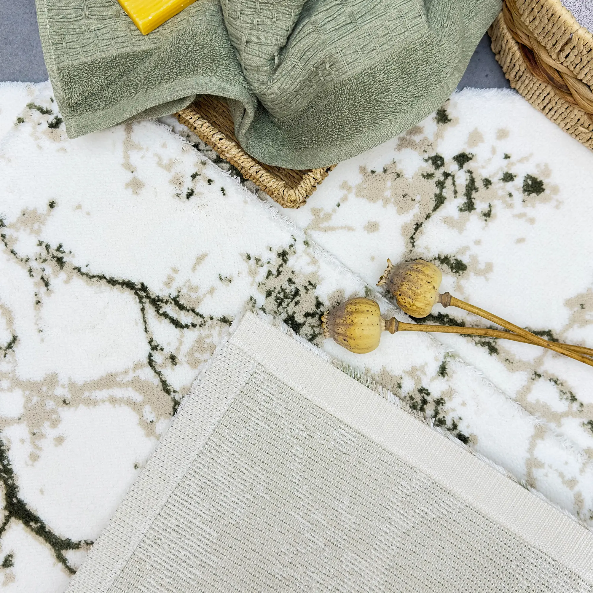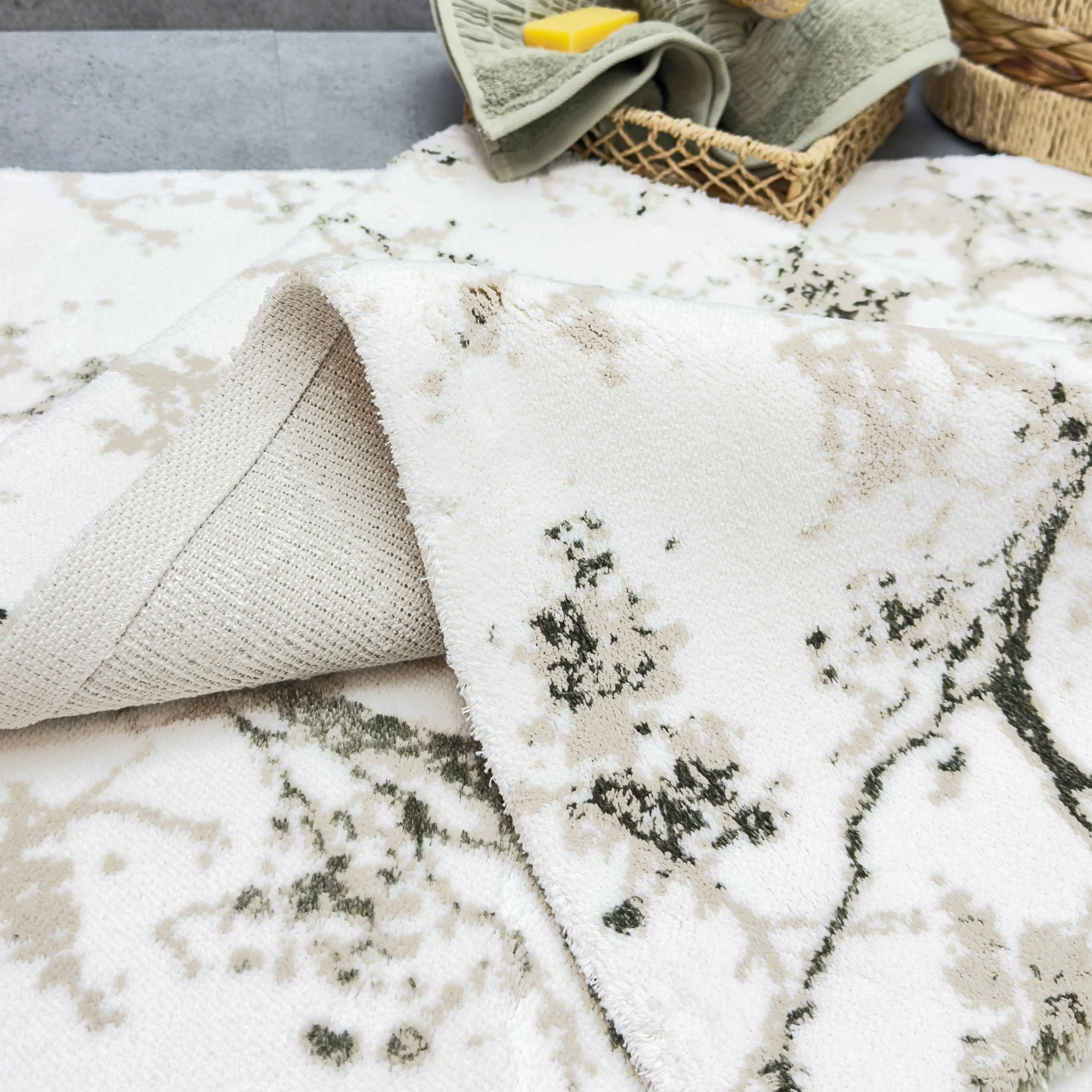 LUCIE 2'Lİ PASPAS TAKIMI, bu zarif paspas seti, Pamuk - viskon ipliğinden üretilmiş olup, yumuşak dokusu sayesinde konforlu bir kullanım sunar. Alt kısmı halı tabanlıdır, bu sayede kaymaz özelliğe sahiptir ve güvenli bir kullanım sağlar.