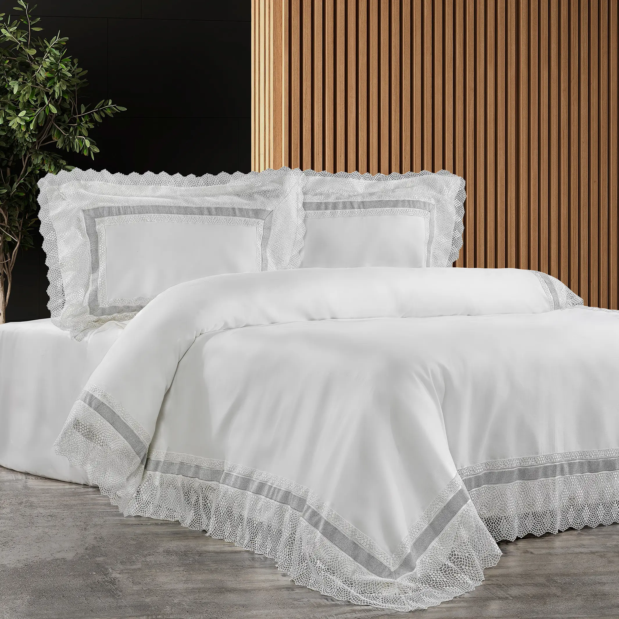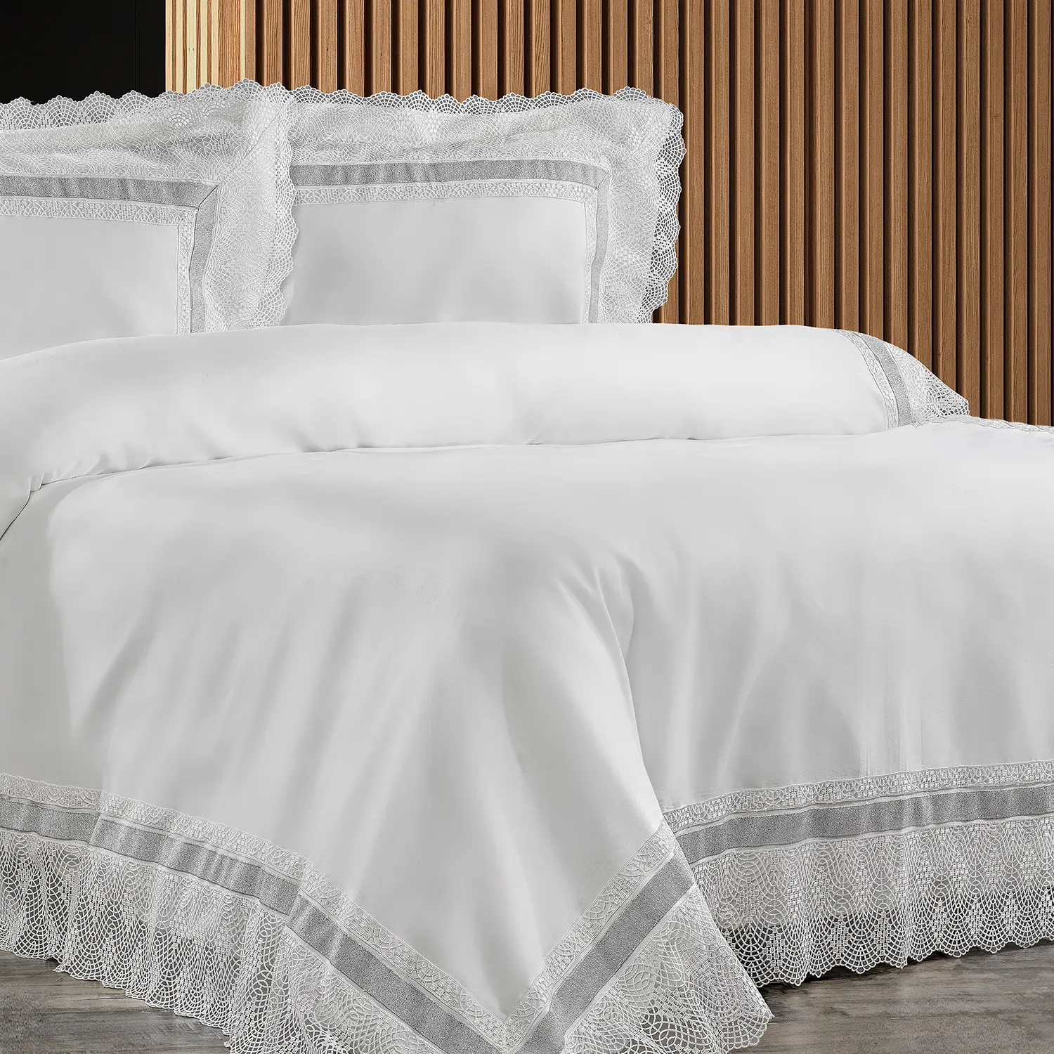 OPHELIA DANTELLİ NEVRESİM TAKIMI, Dantel detaylarıyla romantik bir dokunuş, beyaz rengin asaletiyle zamanın ötesinde...