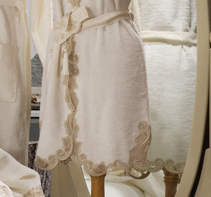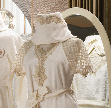 Tasarım: Bornozun yaka kısmı ve göğüs bölgesinde işlenmiş dantelleri bulunmaktadır.