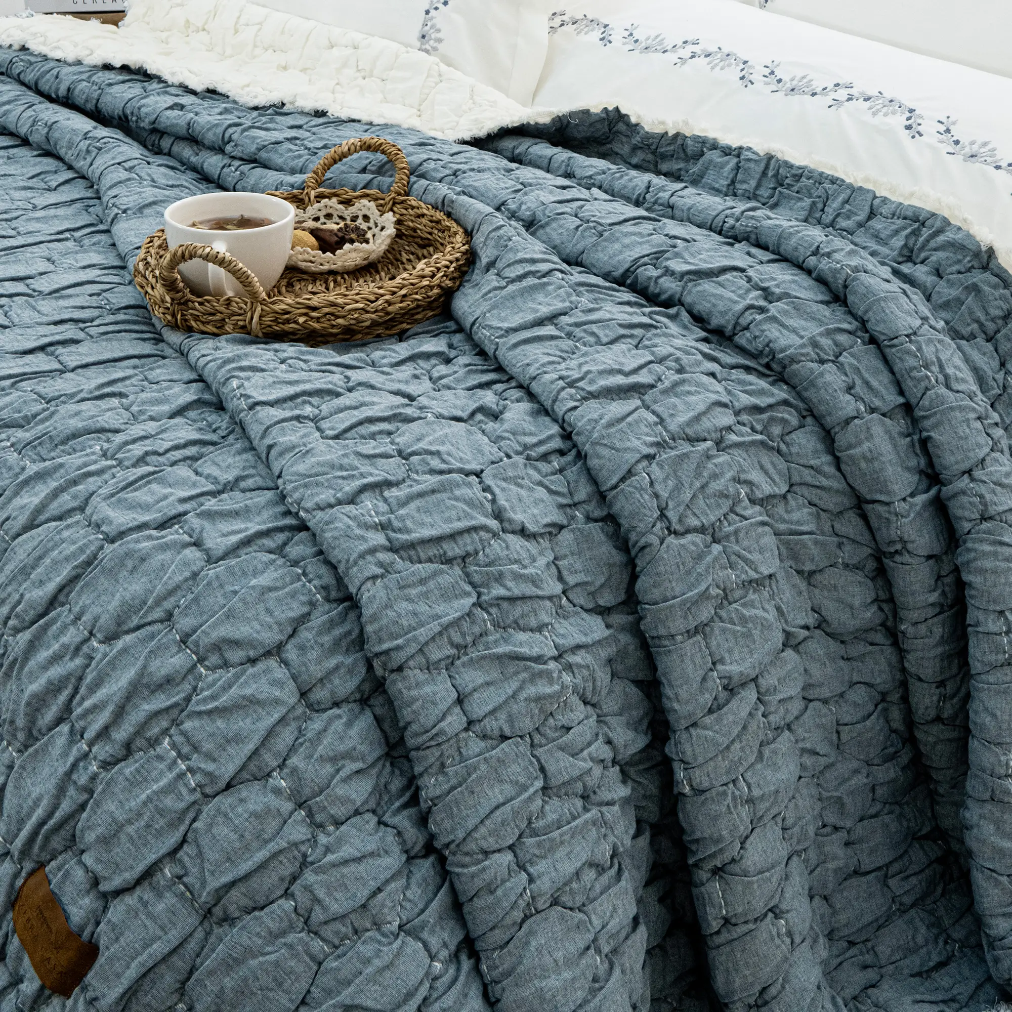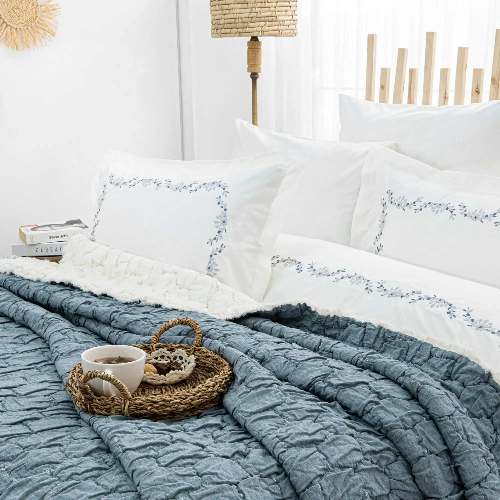 - Tasarım: Petek doku efektli yumuşak yatak örtüsü, zarif el işçiliği nakış detayları, bohem, rustik ve doğal dekorasyon stilleriyle uyumlu