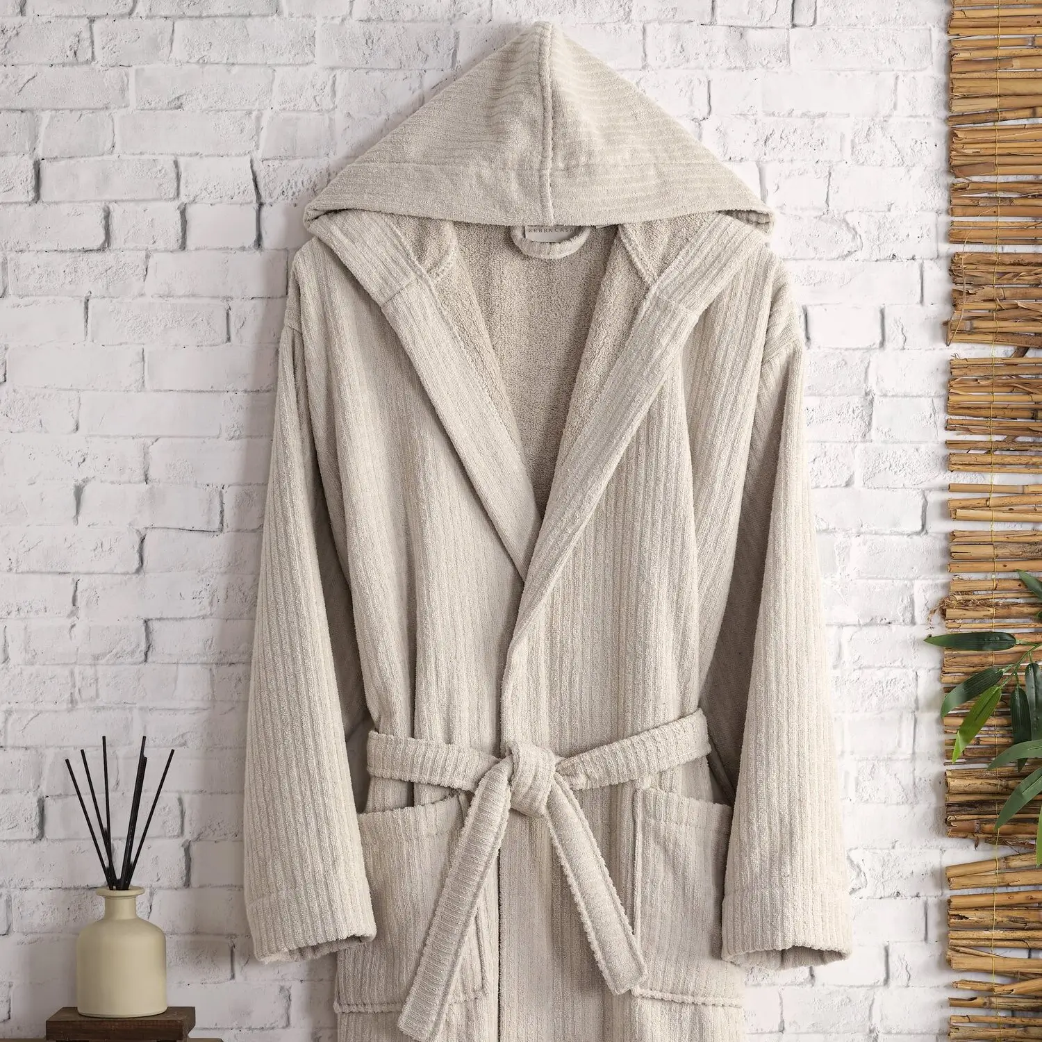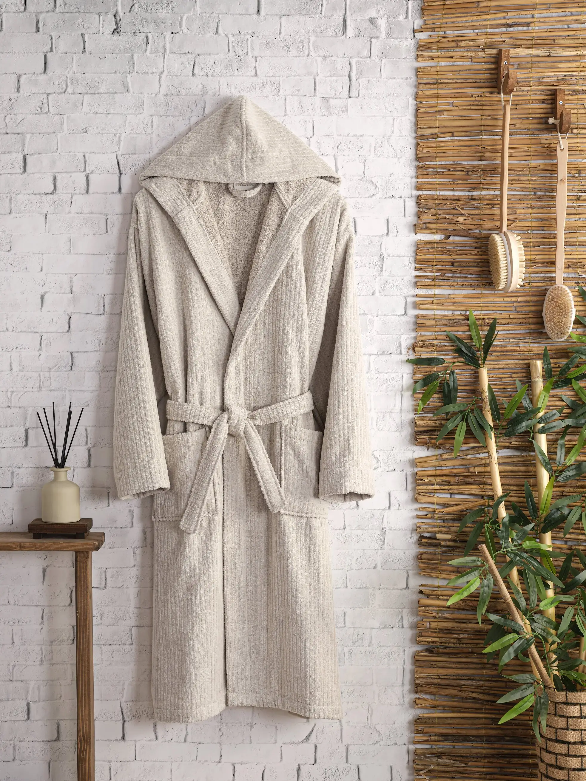 Kapüşon: Bornozun üst kısmında kullanışlı bir kapüşon mevcut. Banyo sonrası saçları kurulamak veya sıcak tutmak için idealdir. Ayrıca iki yanında cepleri vardır.