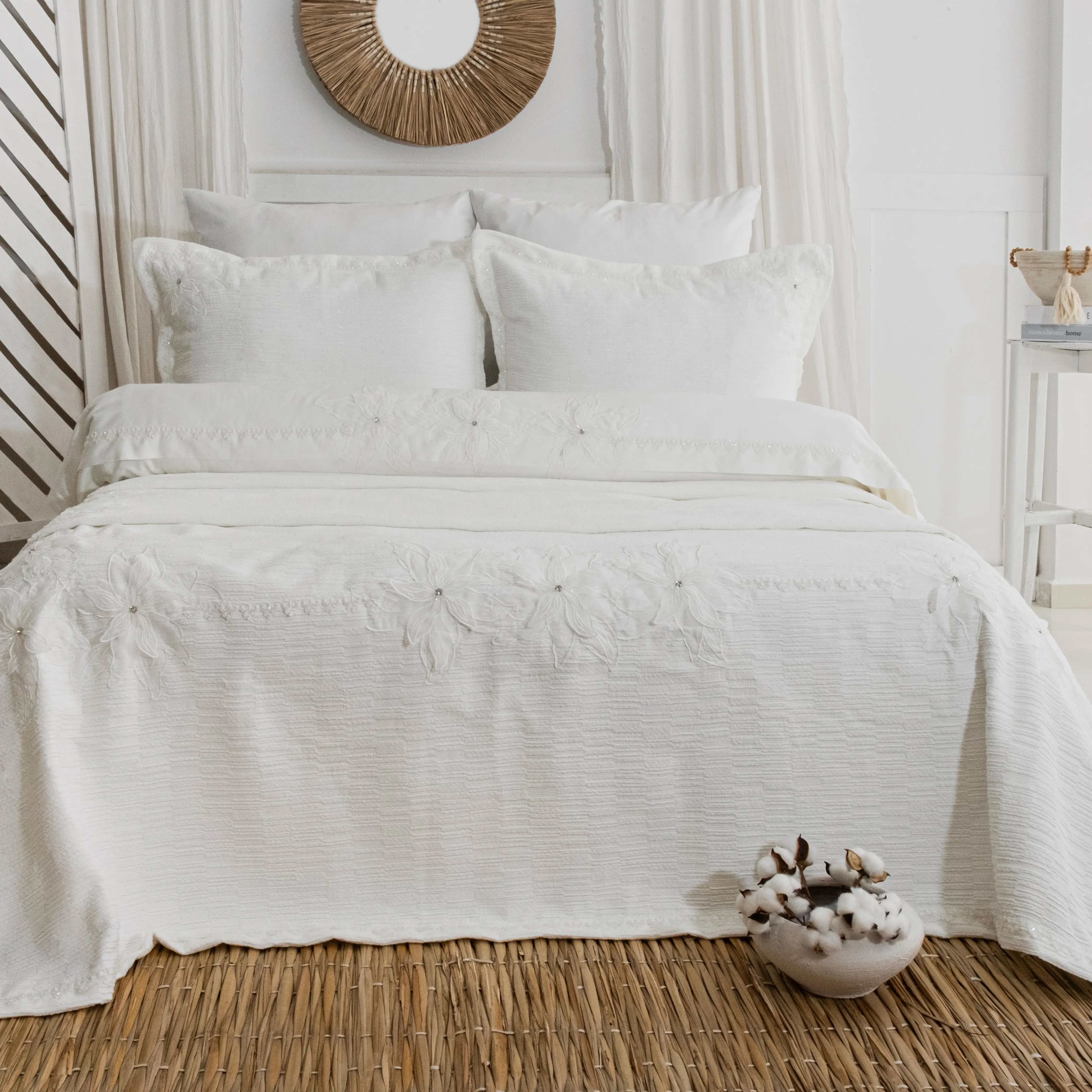 ROSALINDA 7 PARÇA PİKE SETİ / KREM, Zarif tasarımıyla fül aplik detayları, klasik ile modern tarzı mükemmel şekilde harmanlıyor.