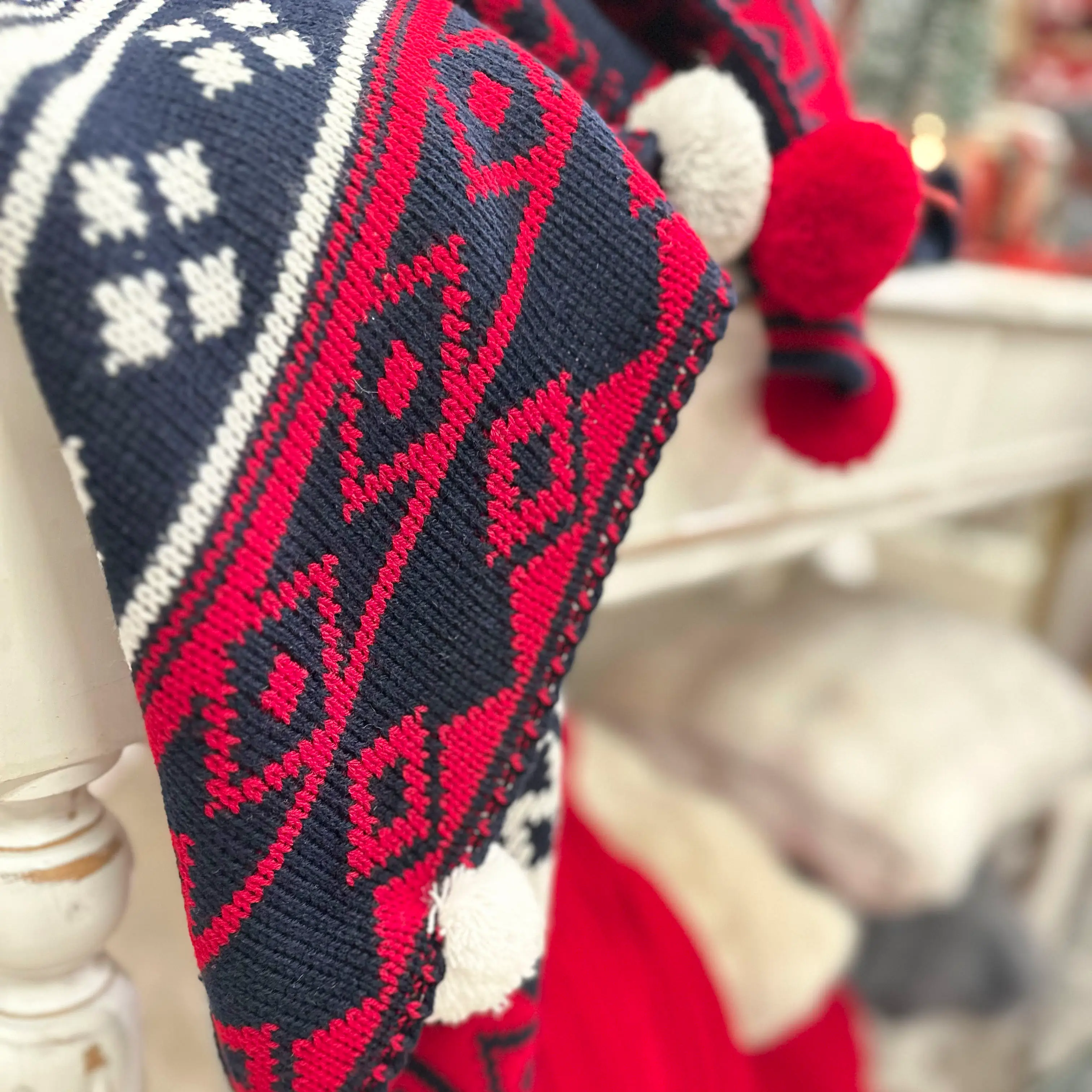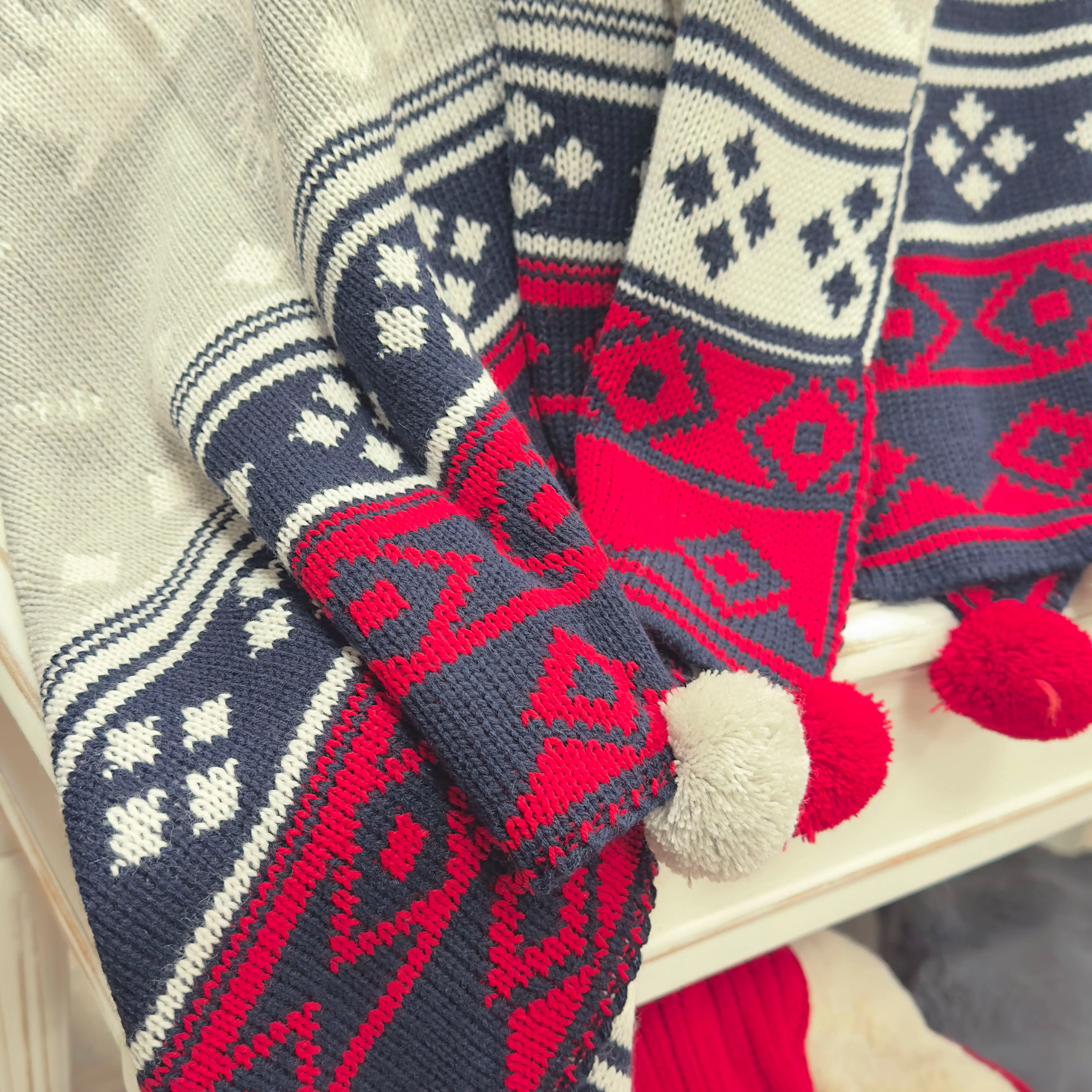 Snow Set Triko Şal & 45x45 Kırlent / Kırmızı - Lacivert