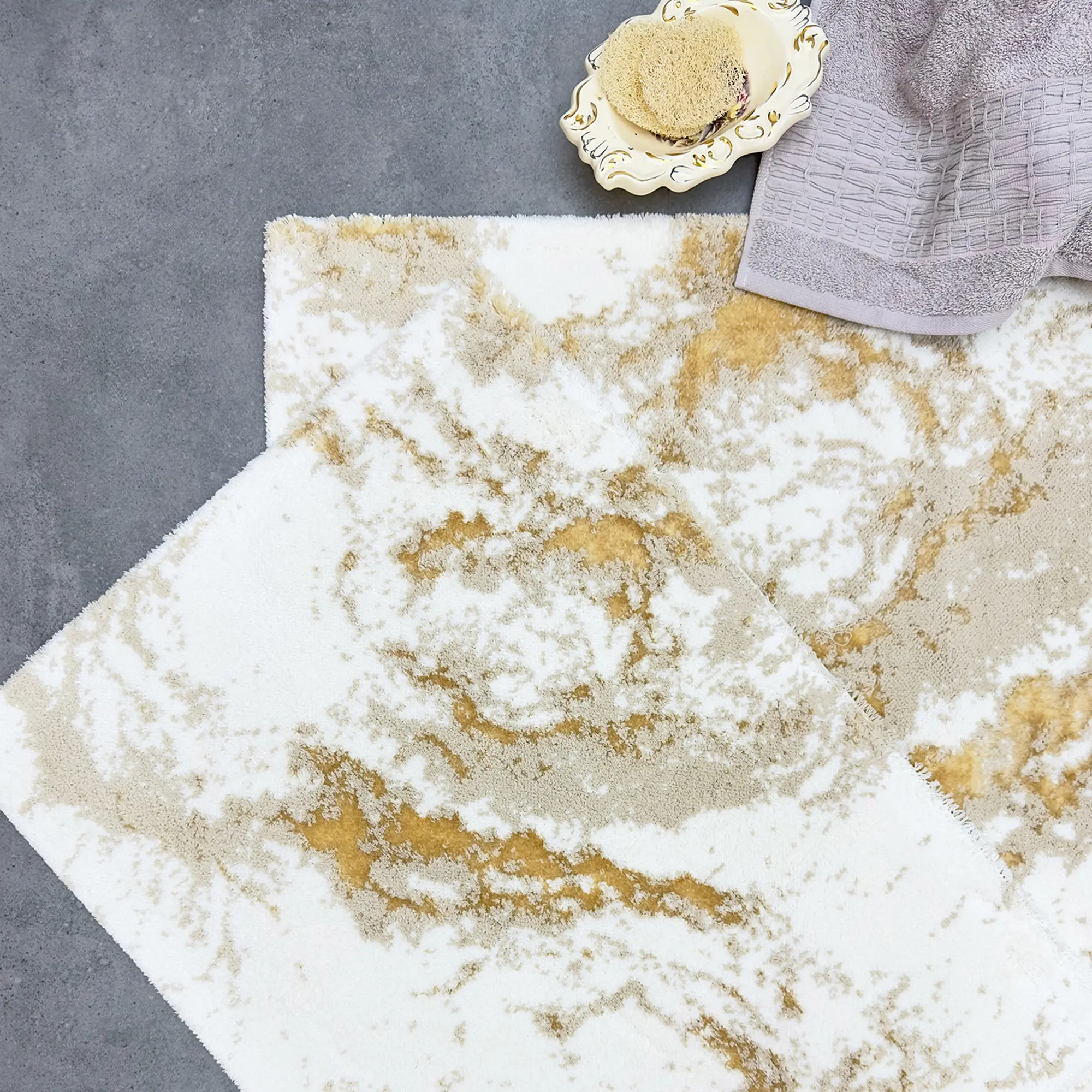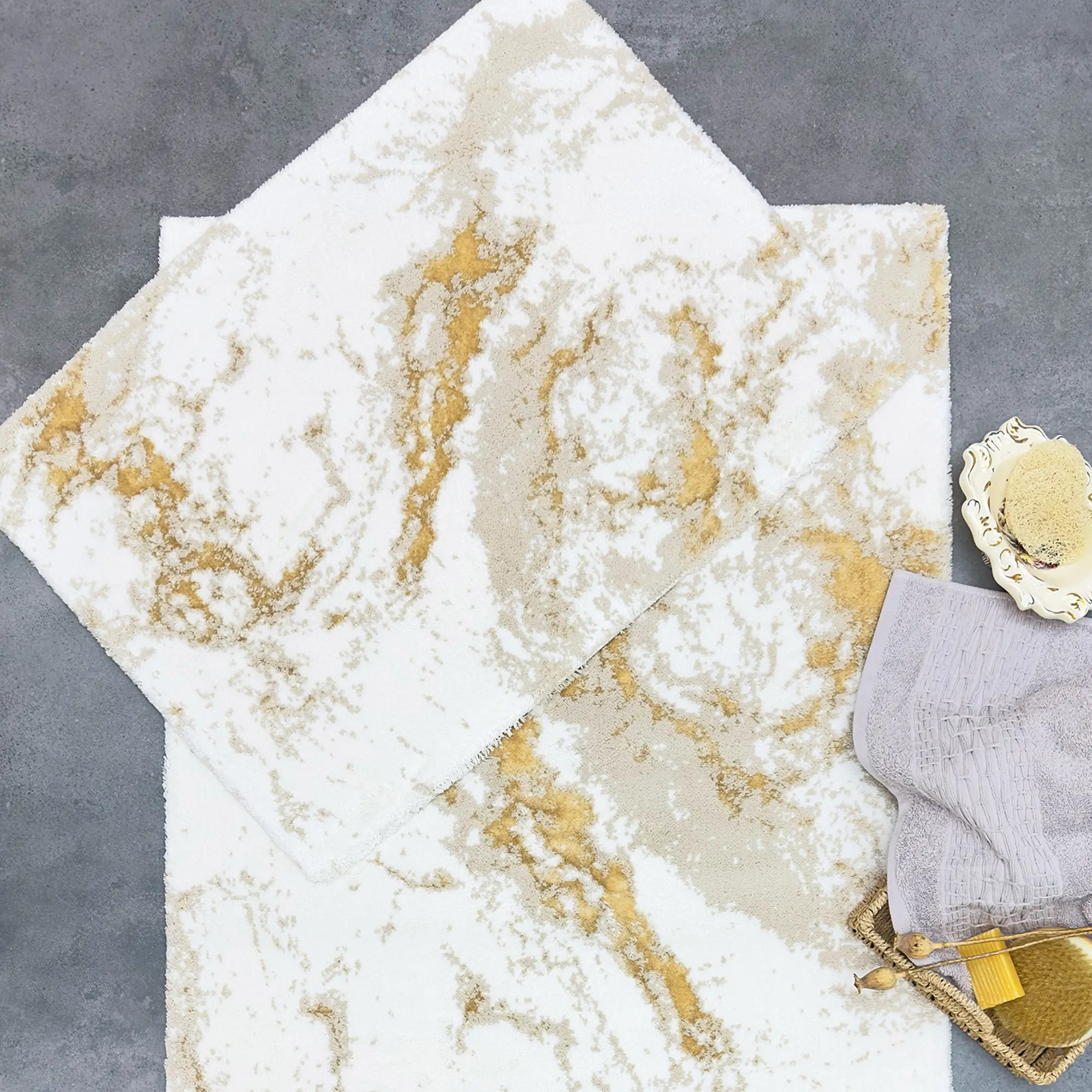 VERONICA 2'Lİ PASPAS TAKIMI, bu zarif paspas seti, Pamuk - viskon ipliğinden üretilmiş olup, yumuşak dokusu sayesinde konforlu bir kullanım sunar. Alt kısmı halı tabanlıdır, bu sayede kaymaz özelliğe sahiptir ve güvenli bir kullanım sağlar.