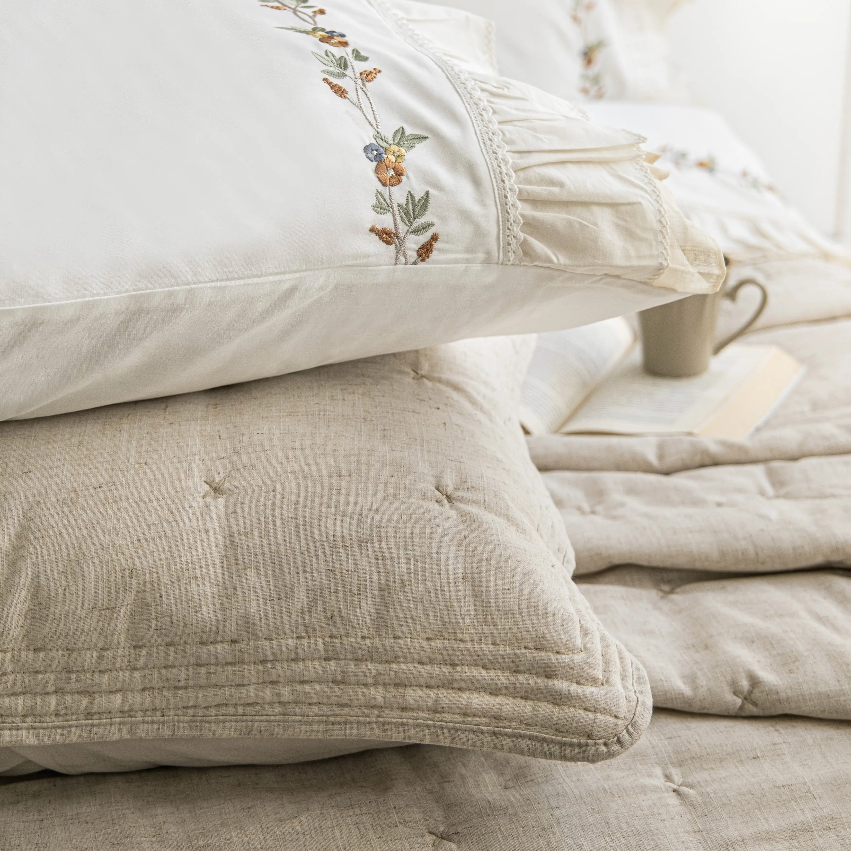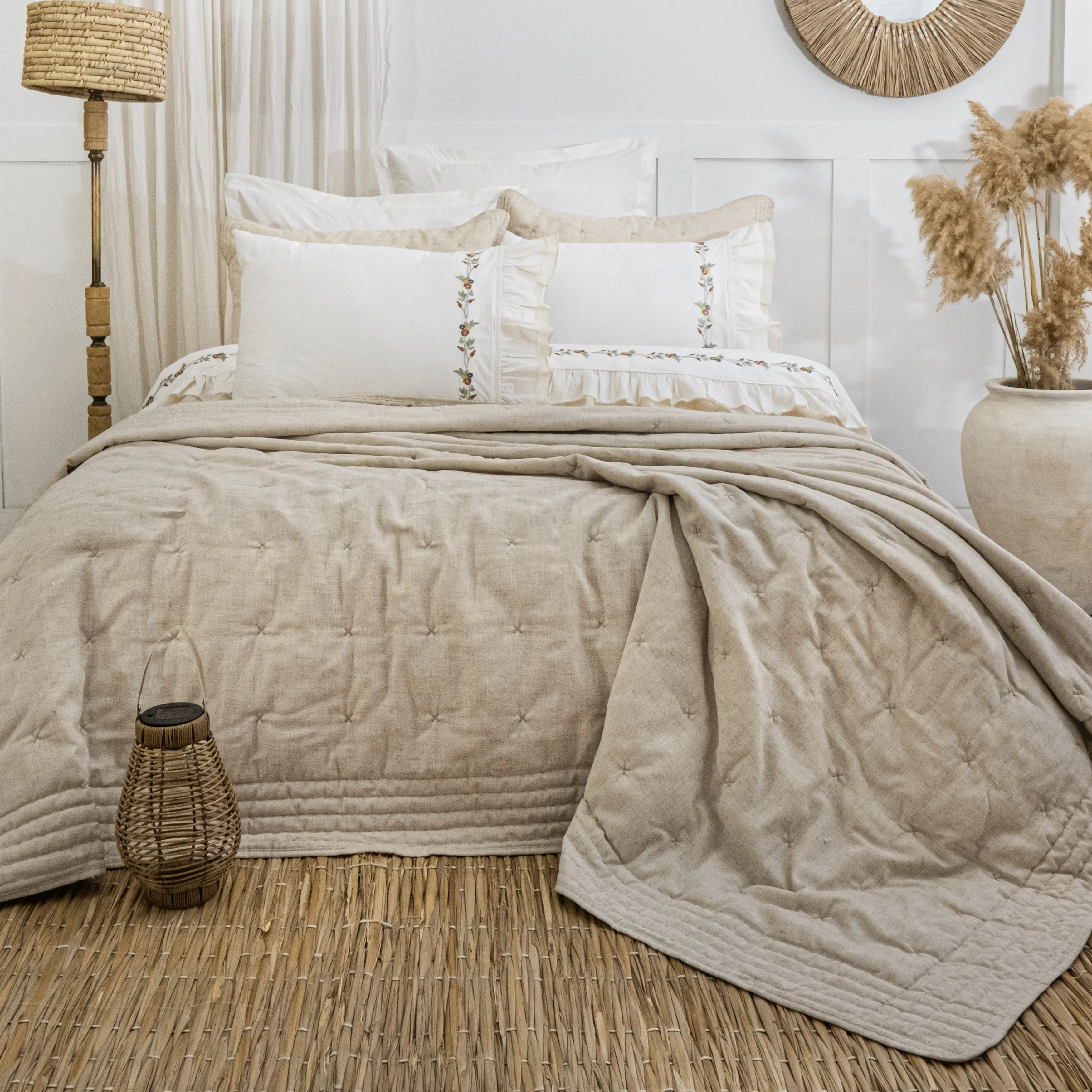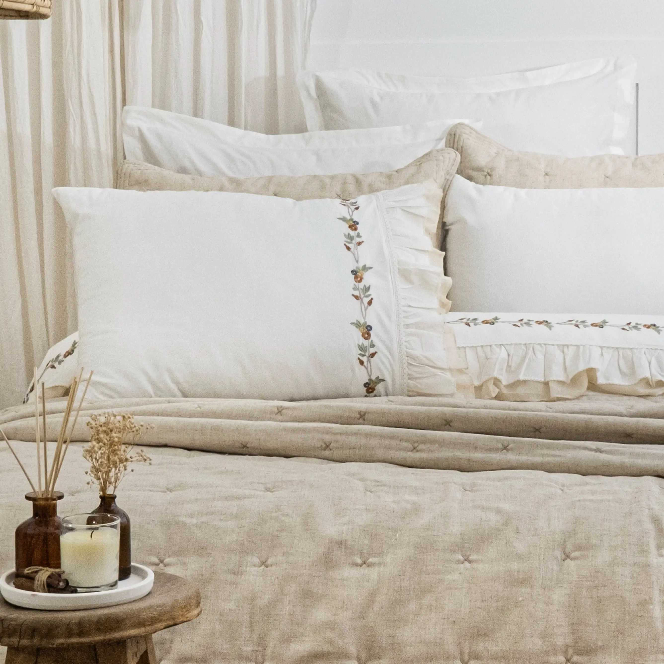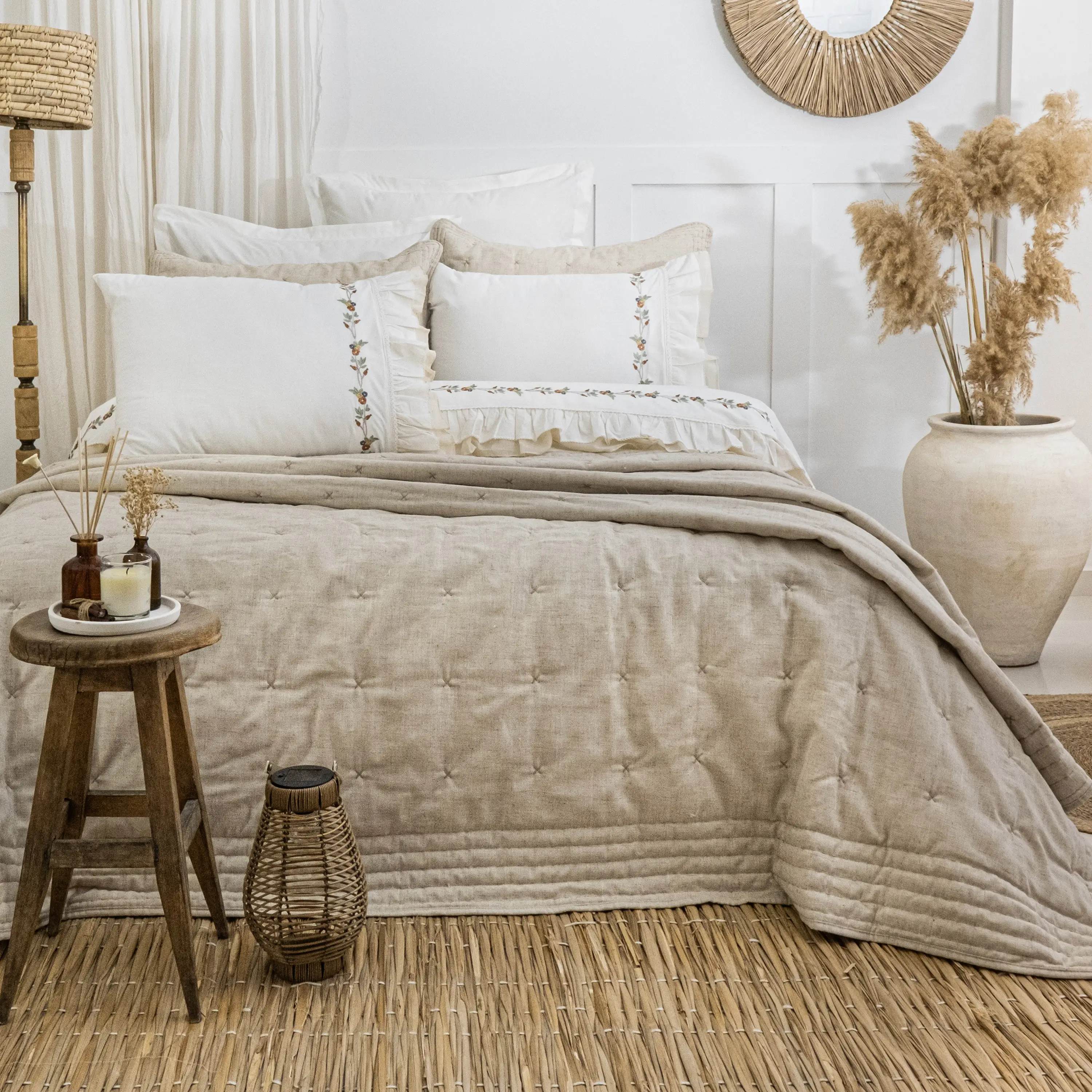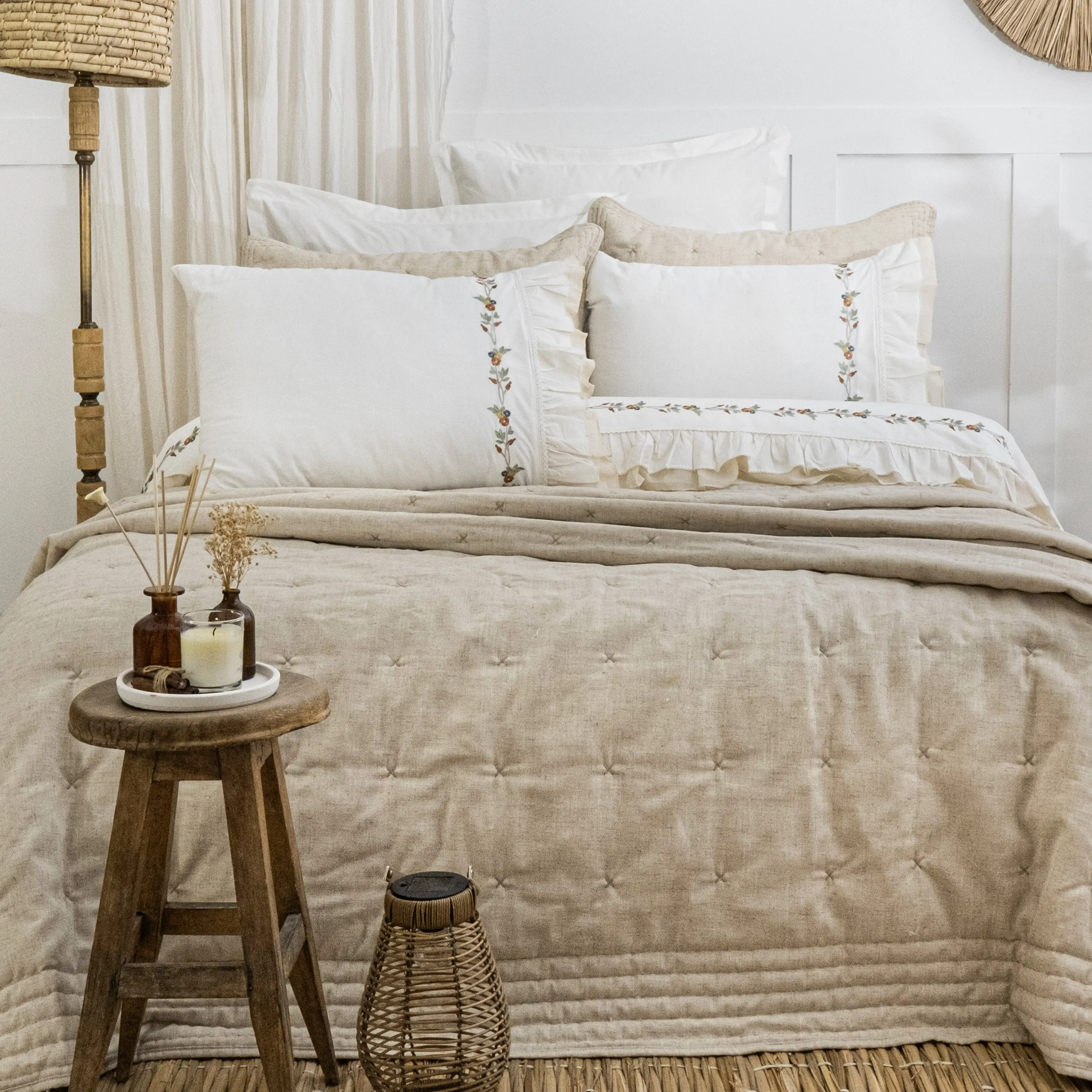 Gelince Haber VerWENDY ÇİFT KİŞİLİK NEVRESİMLİ YATAK ÖRTÜSÜ SETİ / BEJ, Keten Dokulu Yatak Örtüsü ve Nakışlı Nevresim Seti