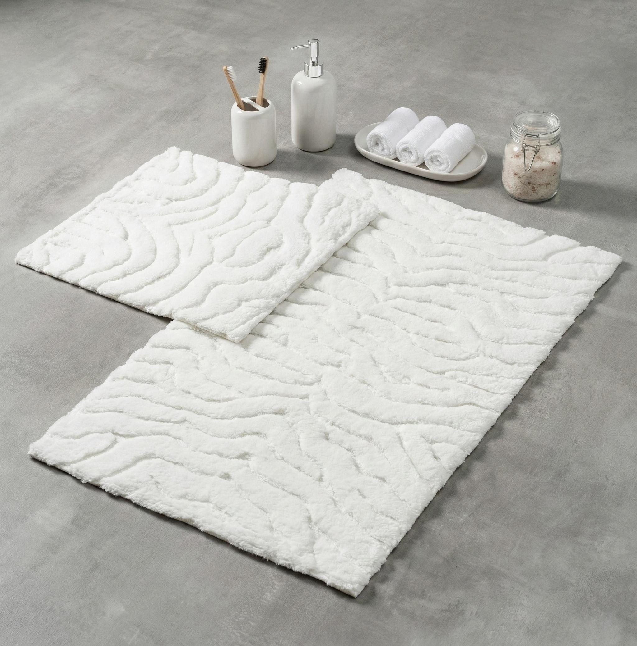 Zebi 2'li Pamuk Paspas Takımı, her banyoya hitap eden desen ve renklerde sade tasarıma sahiptir.