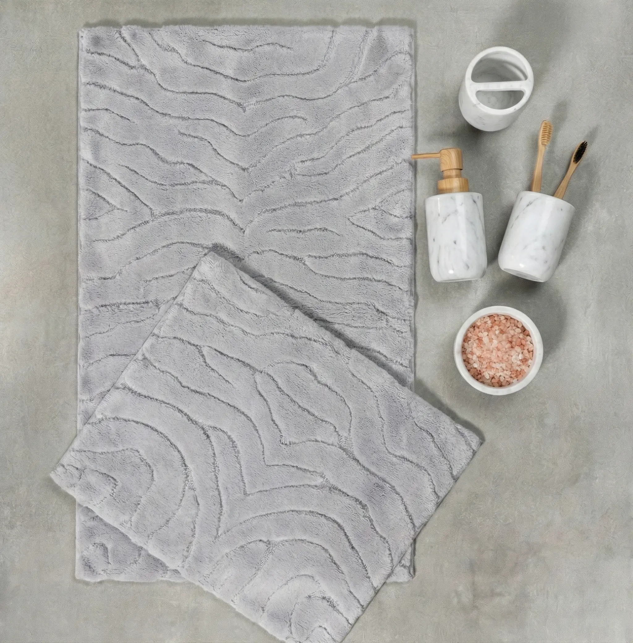 Zebi 2'li Pamuk Paspas Takımı, her banyoya hitap eden desen ve renklerde sade tasarıma sahiptir.